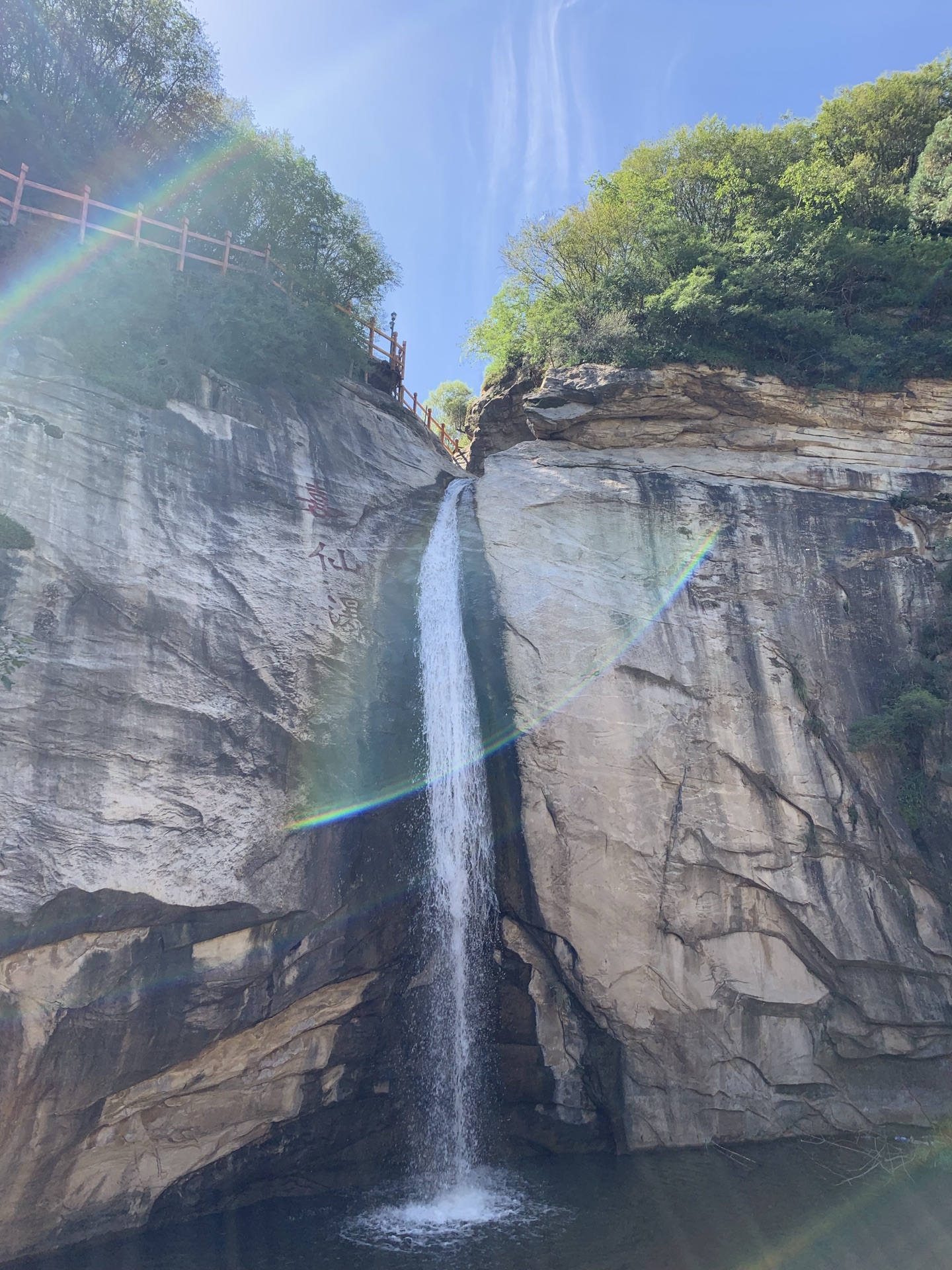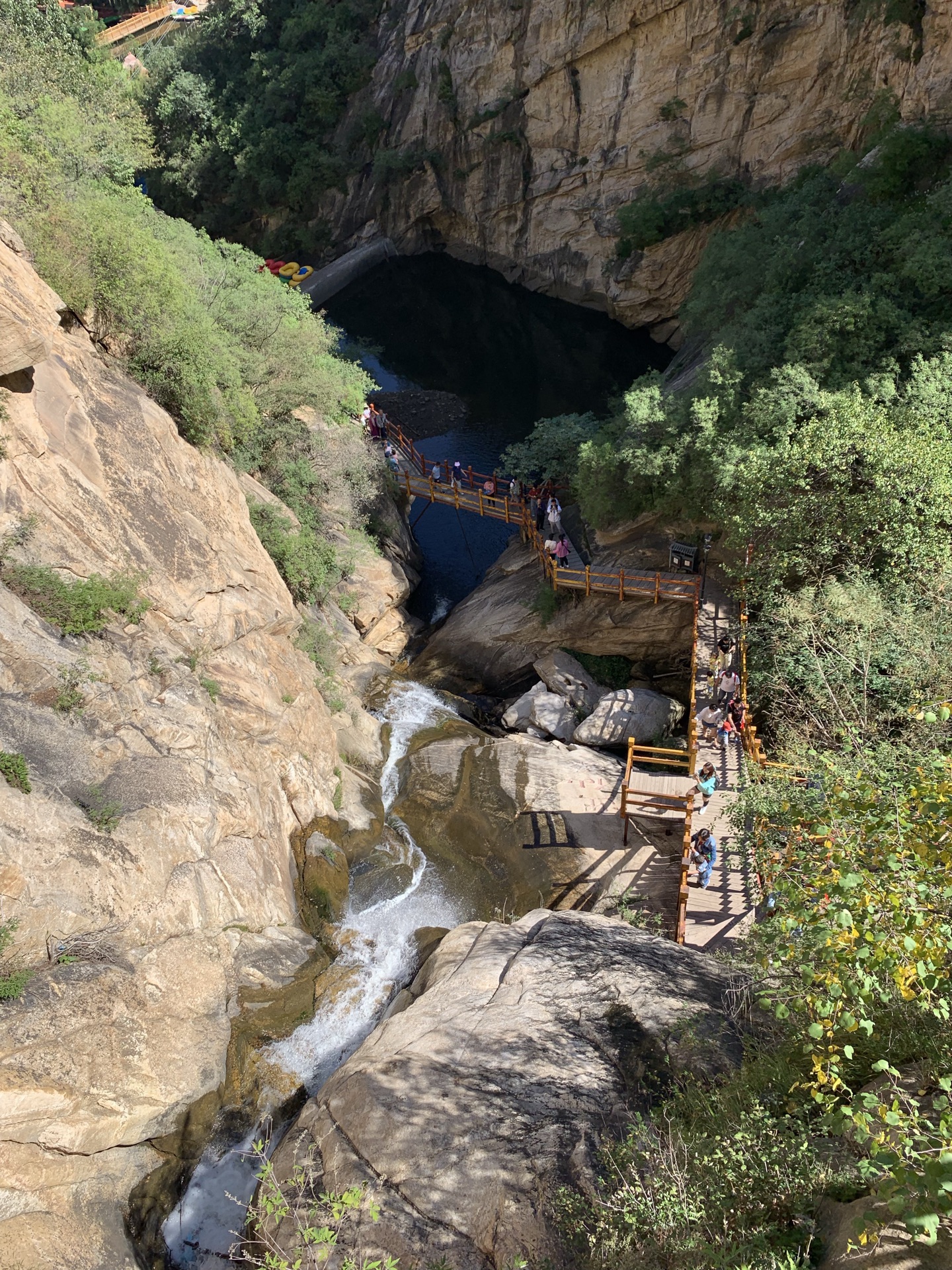清凉谷,在京郊密云,山峰叠翠,潭瀑相交。从山底爬上去,大概1.5个小时。门票50元,玻璃桥100元,从导游处可以买套票,门票+玻璃栈道+玻璃桥+水晶长城一共100元。山上滑竹筏是免费的,水面不大。 山顶的玻璃天桥,悠长通透,而且还有模拟玻璃碎的声音,十分有趣。