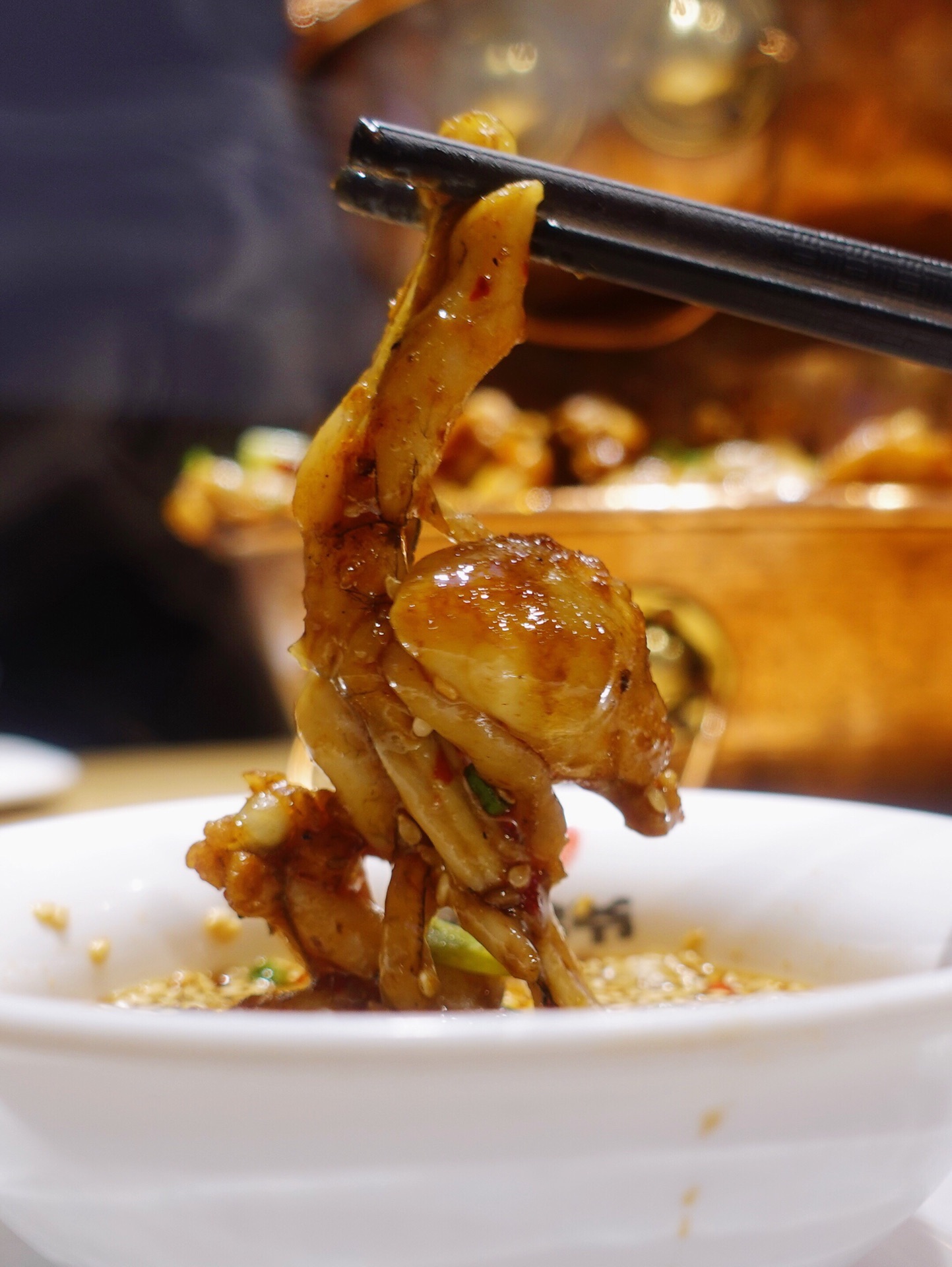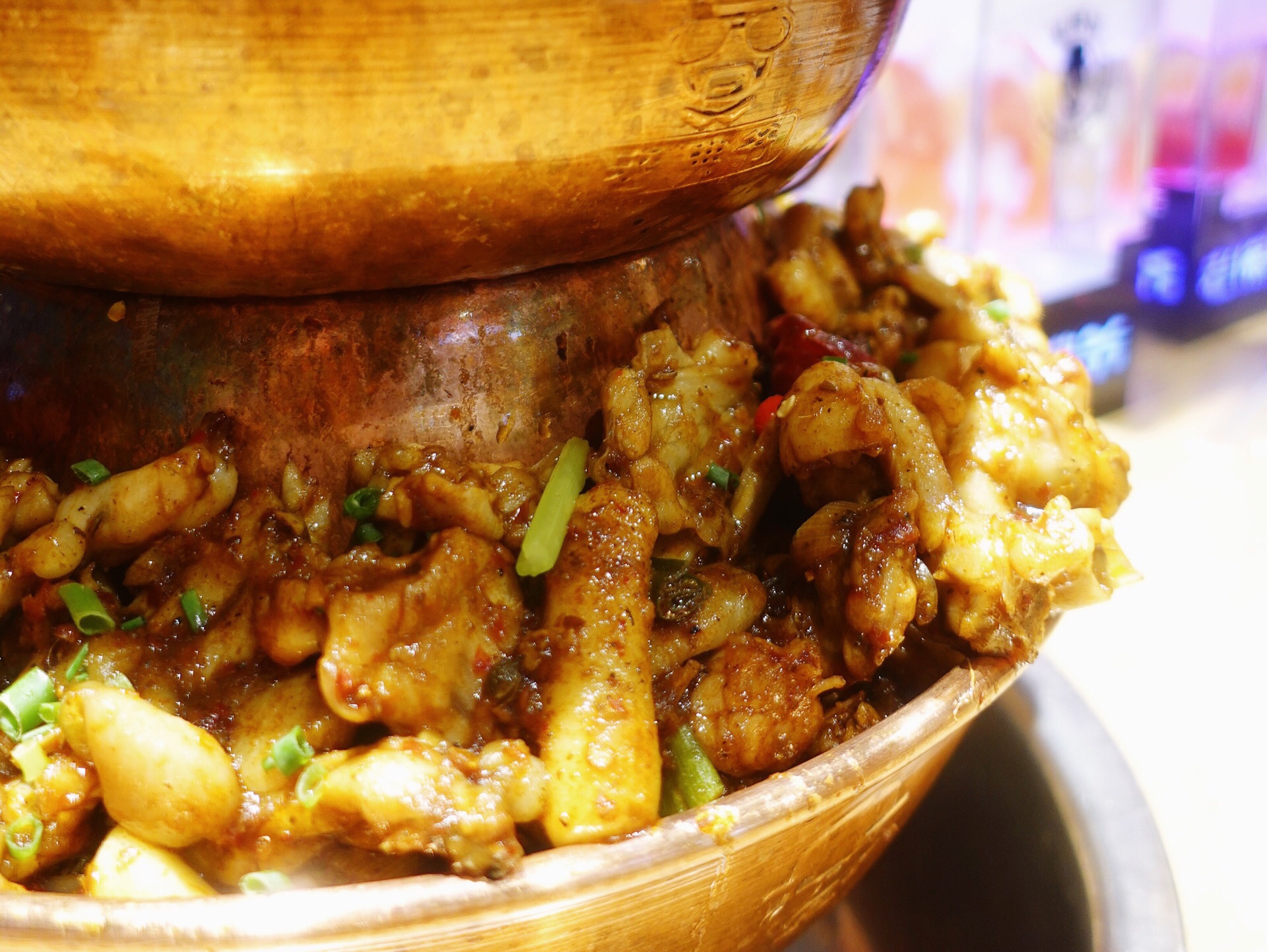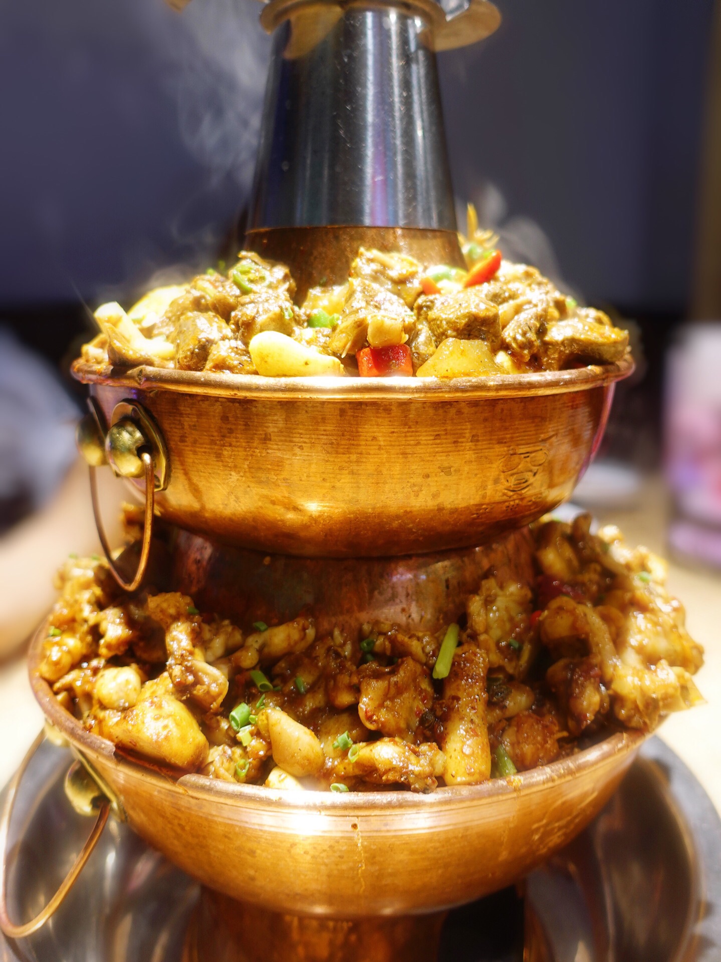 听闻万达开了家铜炉蛙锅 赶紧呼朋唤友吃起来 一层蛙锅不够吃必须来个双层锅 等待蛙锅的时候先来份网红水果捞 烟雾缭绕很飘逸 香甜牛奶加了各种水果 颜值味道都在线 喝完这碗甜品双层蛙锅就上桌啦 滋滋冒烟 等服务员翻拌好就能大快朵颐 肥美蛙肉配上香辣牛腩 还有各种美味配 菜根本停不下来 牛蛙蘸上酱汁别有一番滋味 点的微辣 但一直加热反倒越吃越麻辣 忍不住要了碗冰粉 晶莹剔透的冰粉特别解辣 对啦饮料也很有心机隐藏在方形盒内 同样烟雾缭绕 犹如神仙饮品 私房西柚汁值得推荐哦