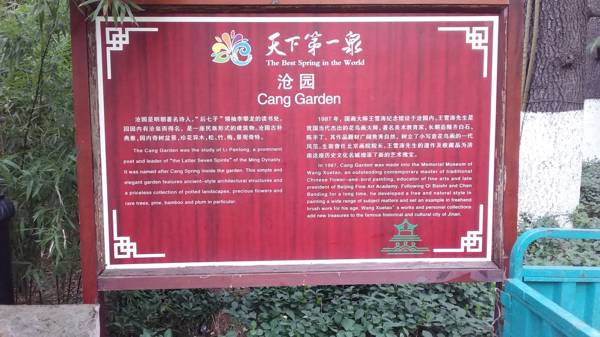 网友2019-09-18园内苍松挺拔、腊梅橙黄、秀竹婆娑,美景诱人,让人赞叹不已沧园位于济南趵突泉公园东南部,为简洁的庭院园林。沧园大门西向,沧桥镶有桥板,桥前立有奇石,四周栽种樱树。园内苍松挺拔、腊梅橙黄、秀竹婆娑,美景诱人,让人赞叹不已。