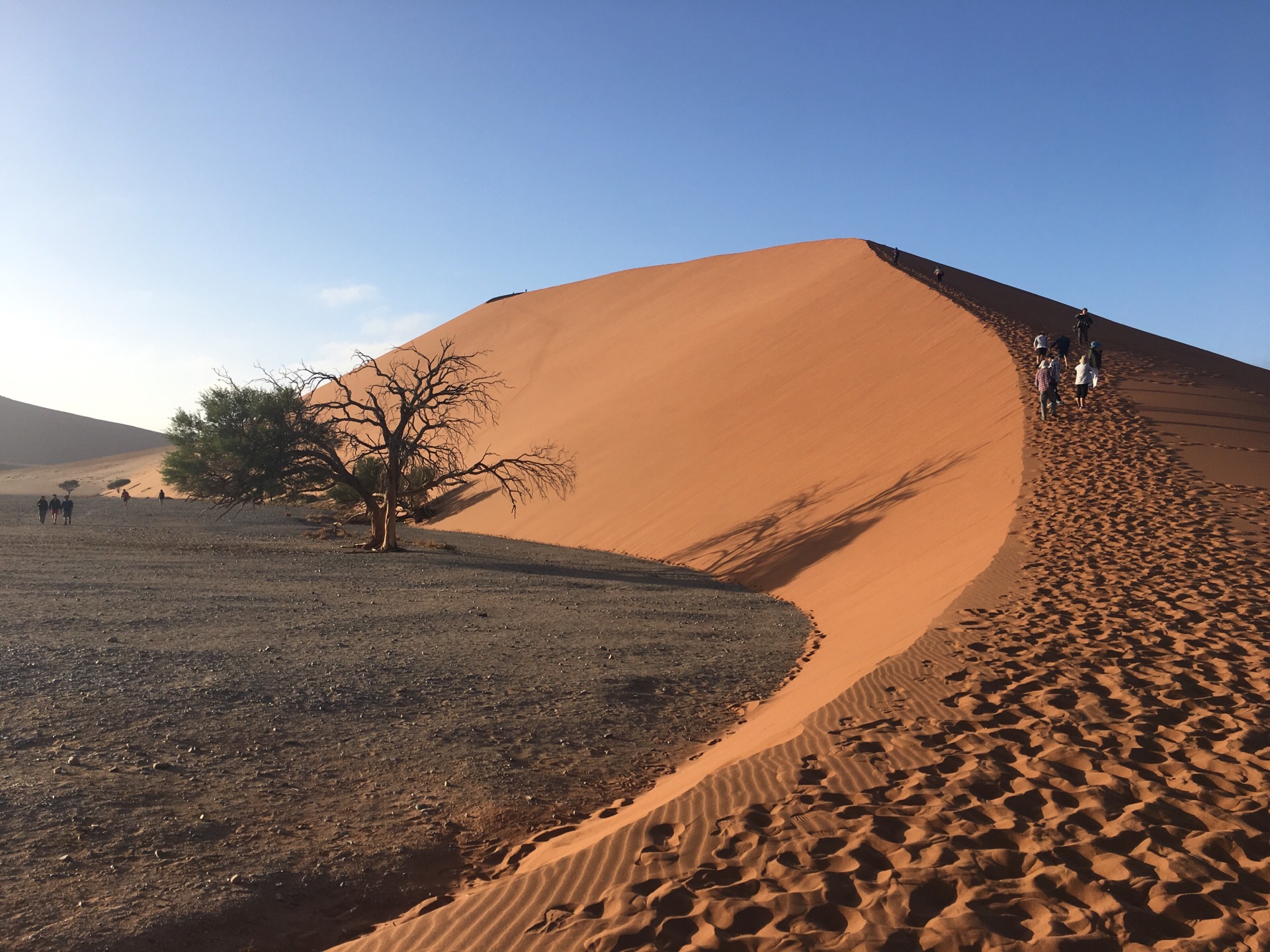 Dune 45是纳米比亚最有名的景点之一,这座红土沙丘在太阳下闪烁光芒,吸引世界各地观光客来朝...Dune 45是纳米比亚最有名的景点之一,这座红土沙丘在太阳下闪烁光芒,吸引世界各地观光客来朝圣,这里因为当地交通不方便,跟团或几个朋友包车自由行是最方便安全的。