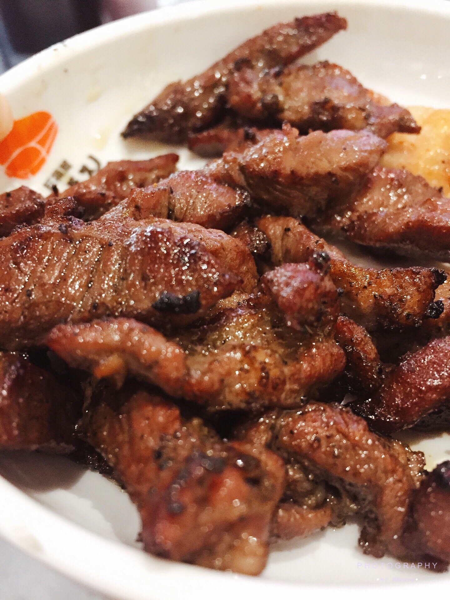 位于中华城北区三楼,店面装修是韩式风格,玻璃上面写着韩文,墙壁上面也是满满的韩文,还有最可爱的布朗熊宝宝,超萌的熊宝宝也到处可以看到。每个位置都有独立的吸油烟机,还有一个小凳子可以放包,湿纸巾,手套,还是很贴心的。 韩式烤肉 每桌都有专门的服务员帮忙烤肉,烤得很专业,看着摆盘都觉得超有食欲的。 最爱五花肉每次必点 厚实的五花肉整块下去烤,烤得有点点焦嫩,把油脂都逼出来,喜欢夹着一片泡菜,包着生菜一起吃,回味无穷。 护心肉 这款肉看起来有点点黑,但是吃起来超嫩的,非常有嚼劲。 掌中宝 这款吃起来口感脆脆的,小小块很入味。 主食 石锅拌饭 最爱吃饭里面的锅巴,味道香浓,拌均匀看起来很不错。