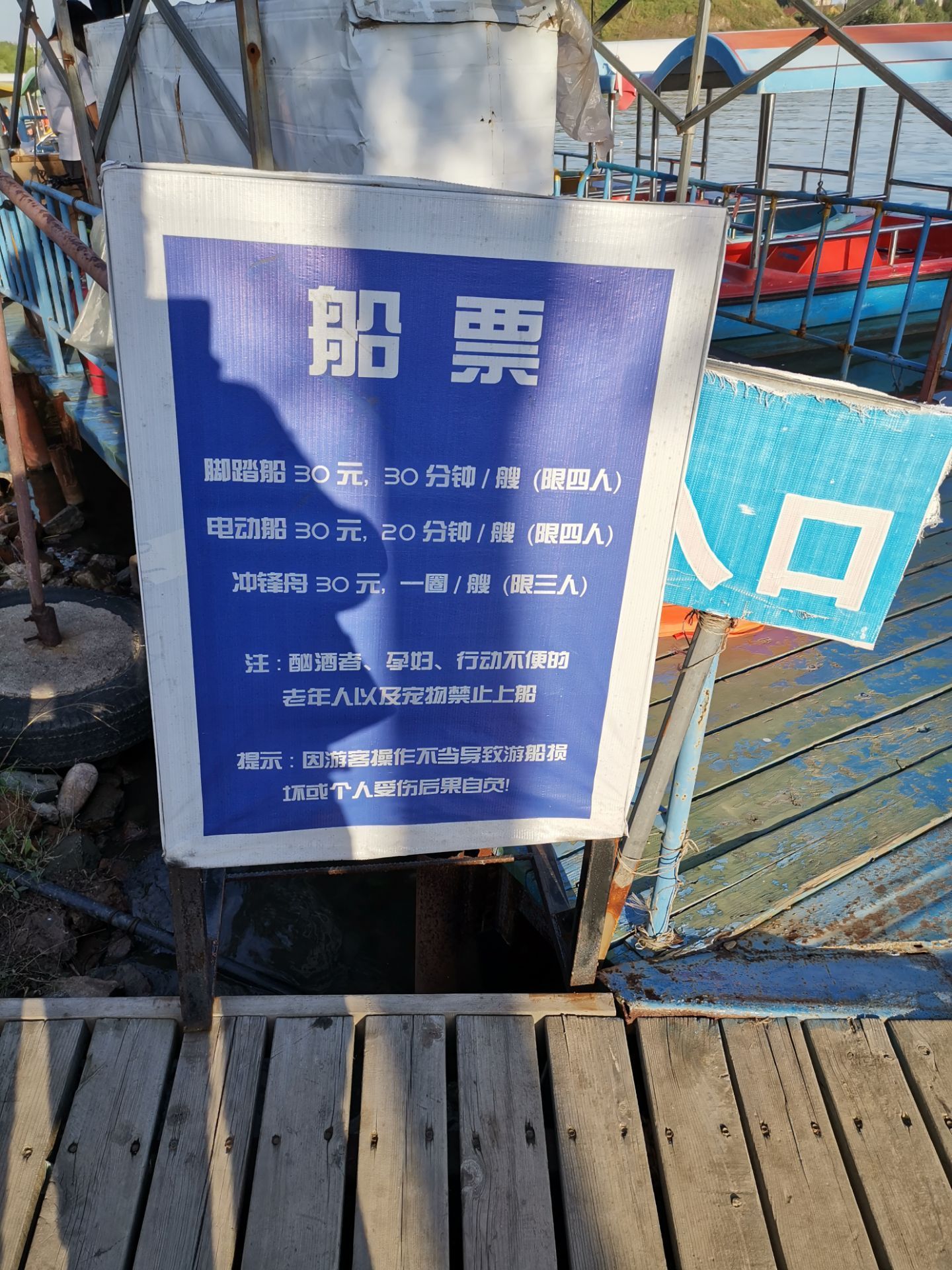 以前我们组织烤串总会来这。上周末带孩子去的,环境比以前好点,河里能划船。 来这很多人,停车场免费这点不错。水里有不少鱼,有卖饲料的喂。鱼看人来了都抢着吃,里面很多特别大条的鱼。 天气晴朗,划船挺好的。分脚踏的和电动的,30元收费。救生衣就是个摆设,大还质量不好。脚踏船蹬半个点也挺累。 放松放松挺好。
