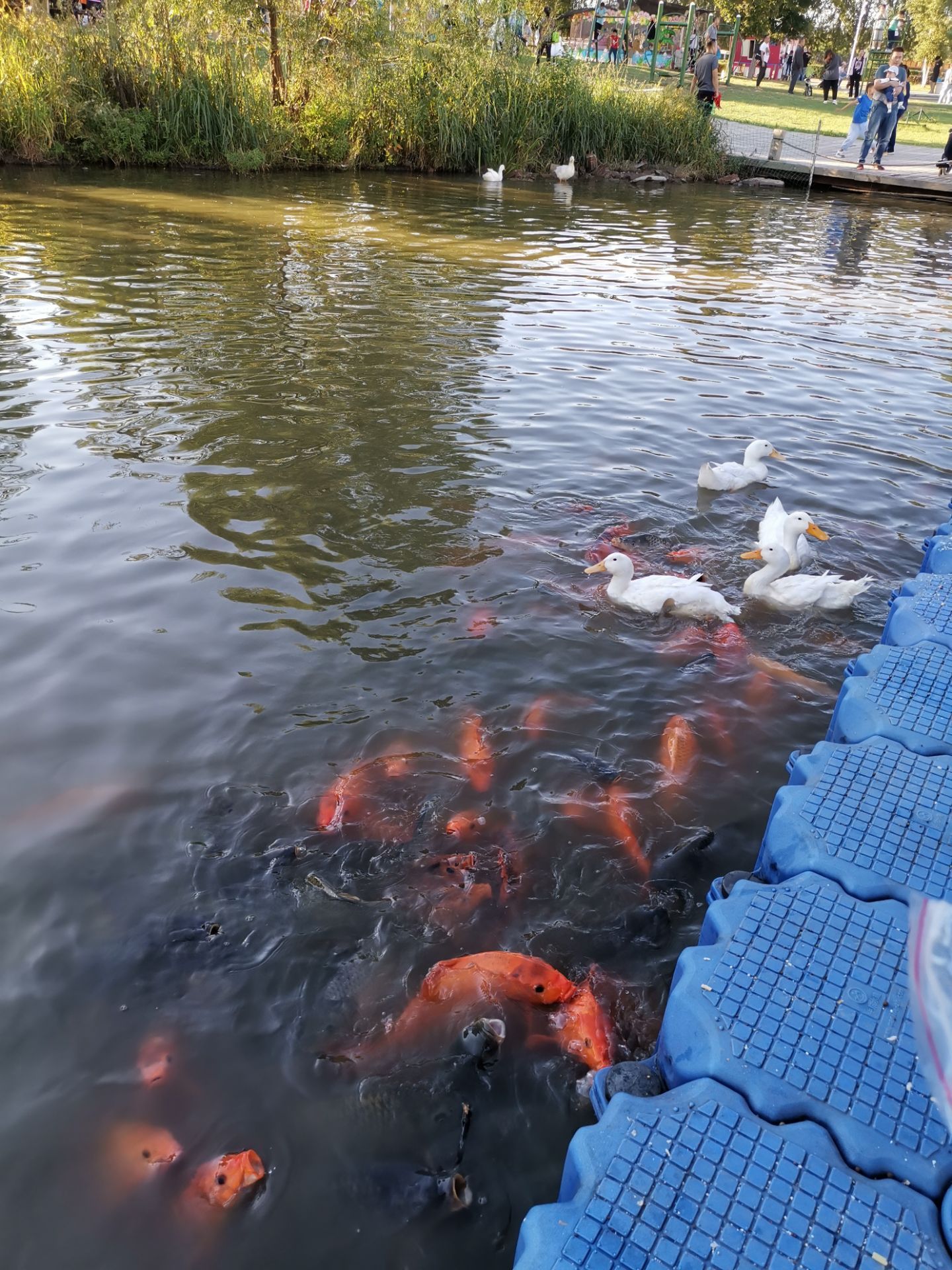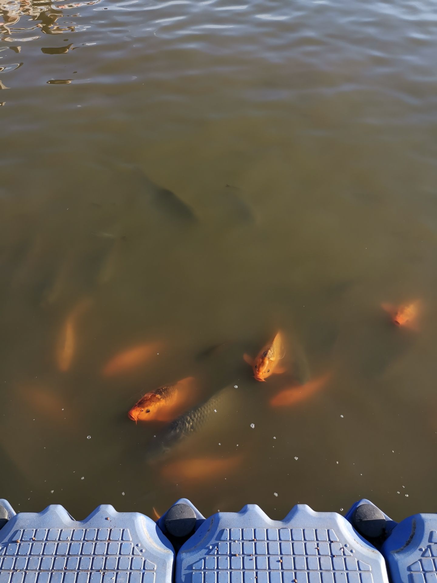 鱼看人来了都抢着吃,里面很多特别大条的鱼。 来这很多人,停车场免费这点不错。以前我们组织烤串总会来这