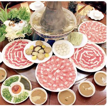 【口味】切出的肉片更以薄、匀、齐、美著称,半公斤羊肉可切二十厘米长八厘米宽的肉片80到100片,每片仅重4.5克,且片片对折,纹理清晰,“薄如纸、匀如晶、齐如线、美如花”,投入海米口蘑汤中一涮即熟,吃起来又香又嫩,不膻不腻。佐料包括芝麻酱、绍酒、酱豆腐、腌韭菜花、卤虾油、酱油、辣椒油及葱花、香菜等,集香、咸、辣、卤、糟、鲜等多种口味为一体,再加上自制的白皮糖蒜和芝麻烧饼,吃起来醇香味厚,口感独特。