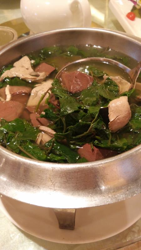 六合家宴就在珠江新城华夏路上,位置很好找,直接坐地铁五号线到珠江新城站,B2出口出来后转左再转左就能看见,附近也有公交车站,交通都很便利。餐厅也挺大的,3,,4层都是他们的,电梯可以直达。我们选择了3层的大厅,整体装修几漂亮,环境看上去很高档。 野菜猪杂鼎,汤水比较清淡,猪杂几新鲜,不过就不太喜欢这个野菜,如果能换成枸杞叶会更好。 潮汕卤水鹅,国庆的时候去汕头买了2次卤水鹅吃,爱上了它,这里的卤水鹅同样有在汕头吃的味道,鹅肉厚实,卤得够入味,而且鸭骨又细,满满都是肉。 香炸百花胶,里面应该是虾胶,口感爽滑。 豆干拼粿肉,潮汕真是多粿类,每次吃都有唔同的品种,之前在汕头都是吃素菜粿,第一次吃这粿肉,粿肉感觉与鱼腐差不多。 白菜双丸煲,牛丸很爽口弹牙,可惜牛肉丸不多,唔够吃啊。 沙茶拌牛肉,牛肉嫩滑,沙茶酱味道也很好,最爱这个菜。 煮杂鱼,鱼比较细条多骨。 芥兰炒粿条,炒很香,配上它独特的辣椒酱更好吃。 总体来说在这个地段,这个环境,性价比都不错的。