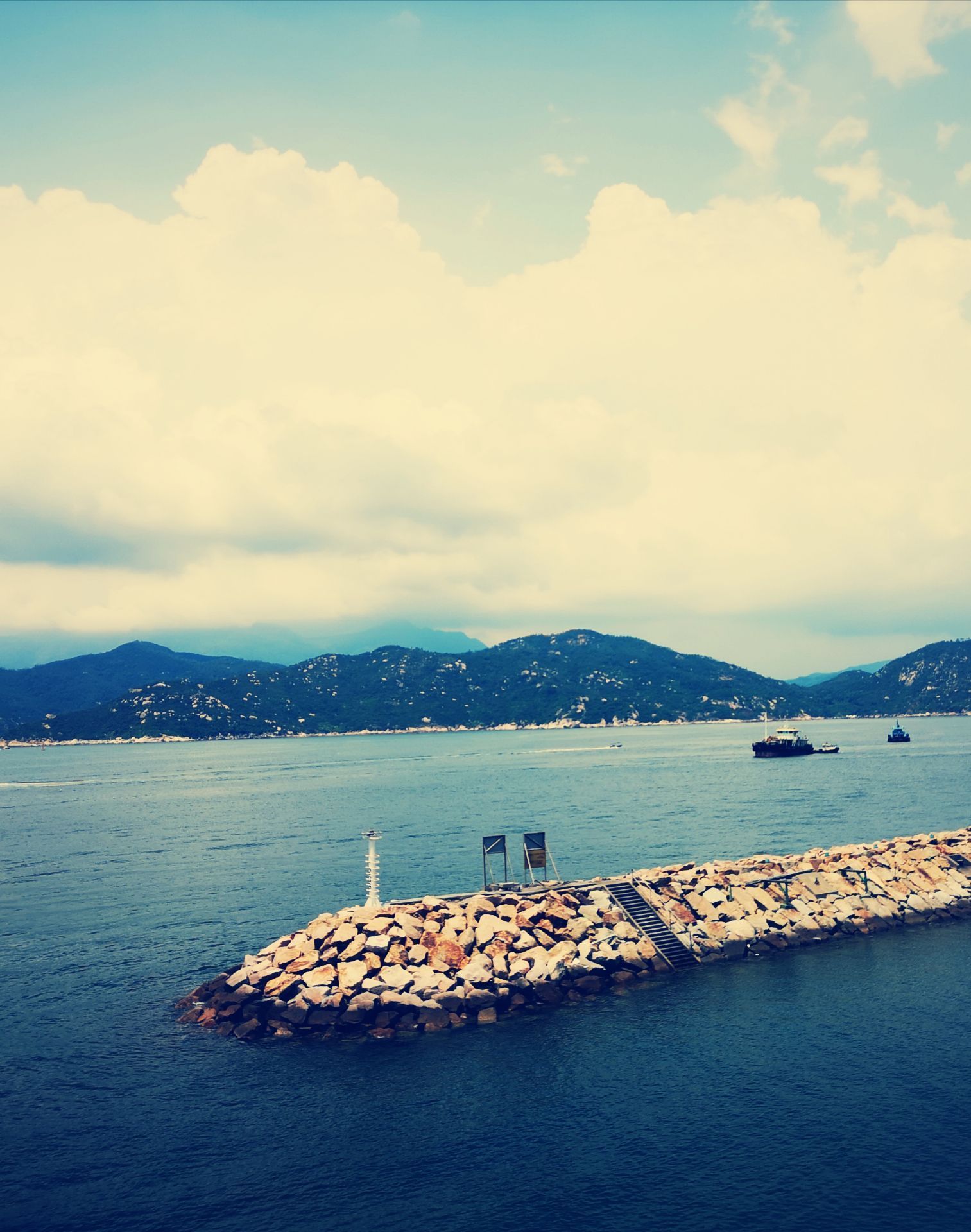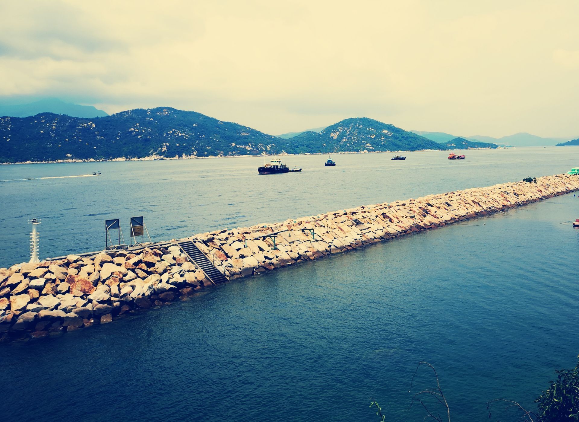 长洲西堤道是一条风景不错、适合漫步的海滨长廊,从中环5号码头出发,抵达长洲码头后,左转即可看到岸边繁多的船只,西堤道的一侧是各式各样的餐馆、小吃店、商铺,另一侧即是广阔的大海。西堤道上是有休息长椅和遮阴栏的,考虑到香港闷热的天气,这一点非常人性化。