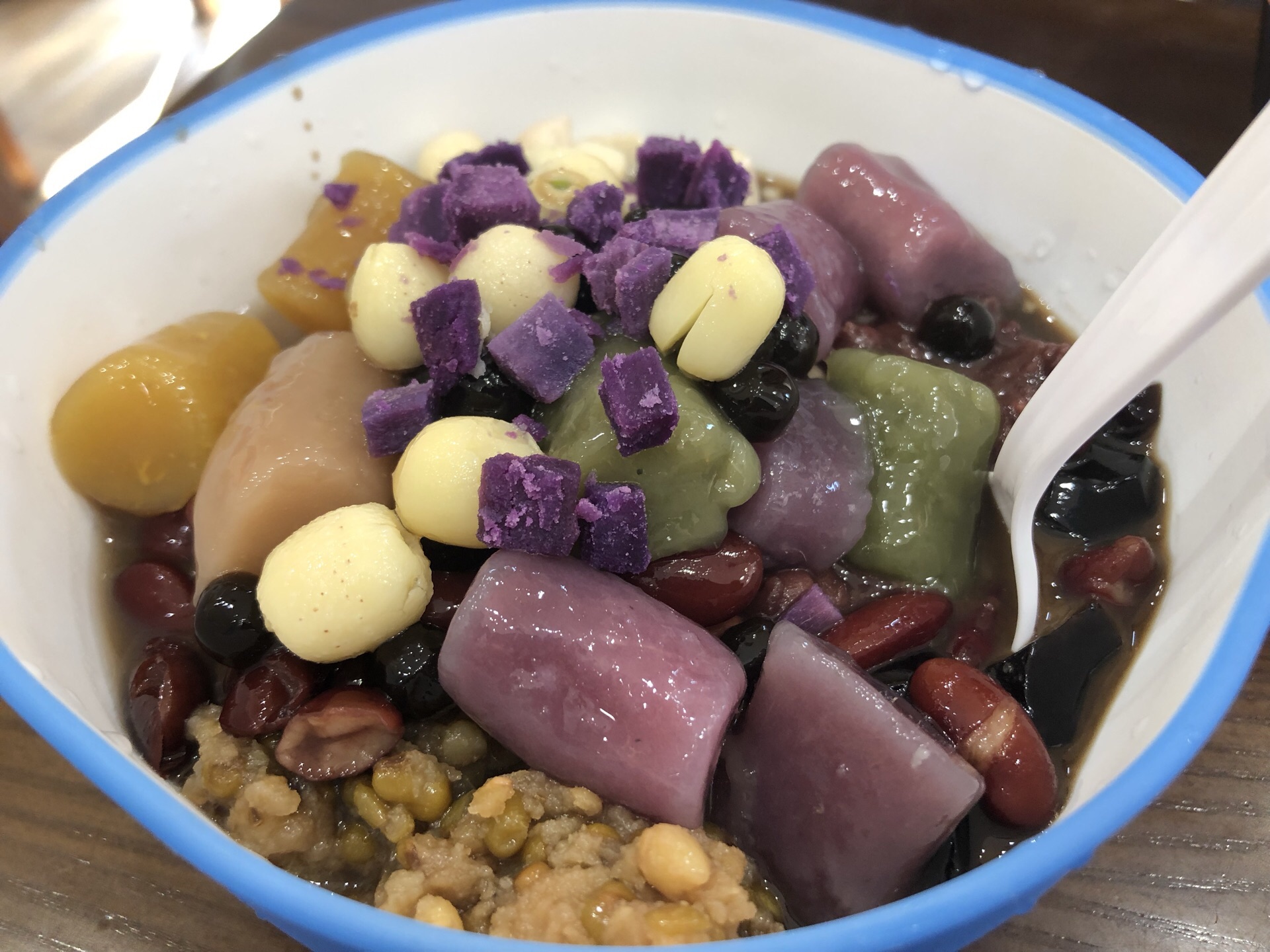 ...大红豆芋圆冰芋圆很好吃,有嚼劲,大红豆煮的太生,没煮爆皮,所以一点味道也没有,还是买正常红豆吧
