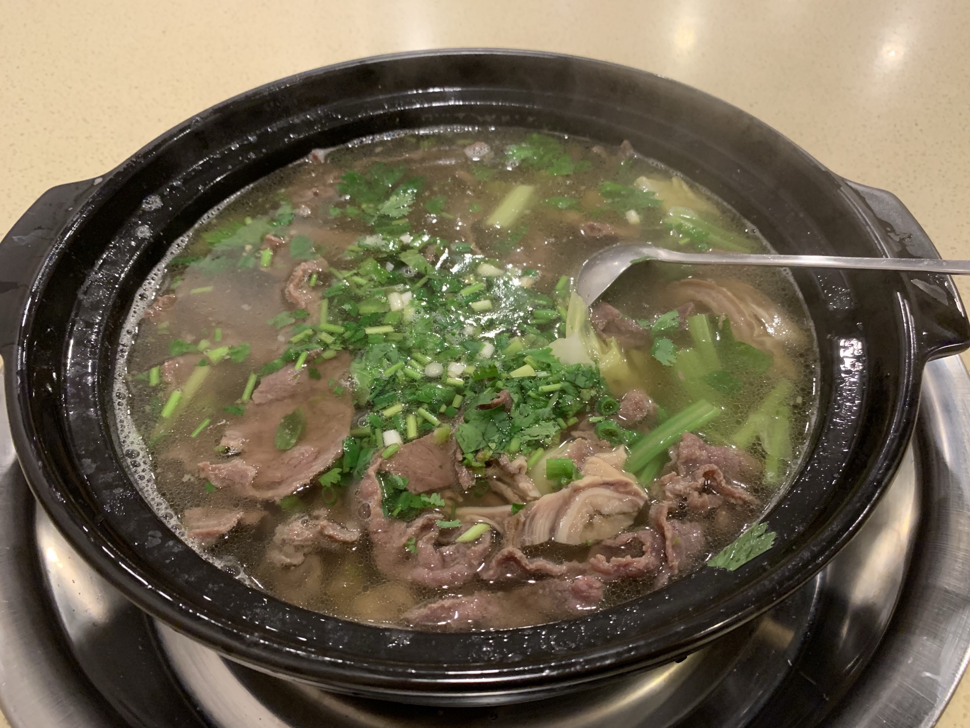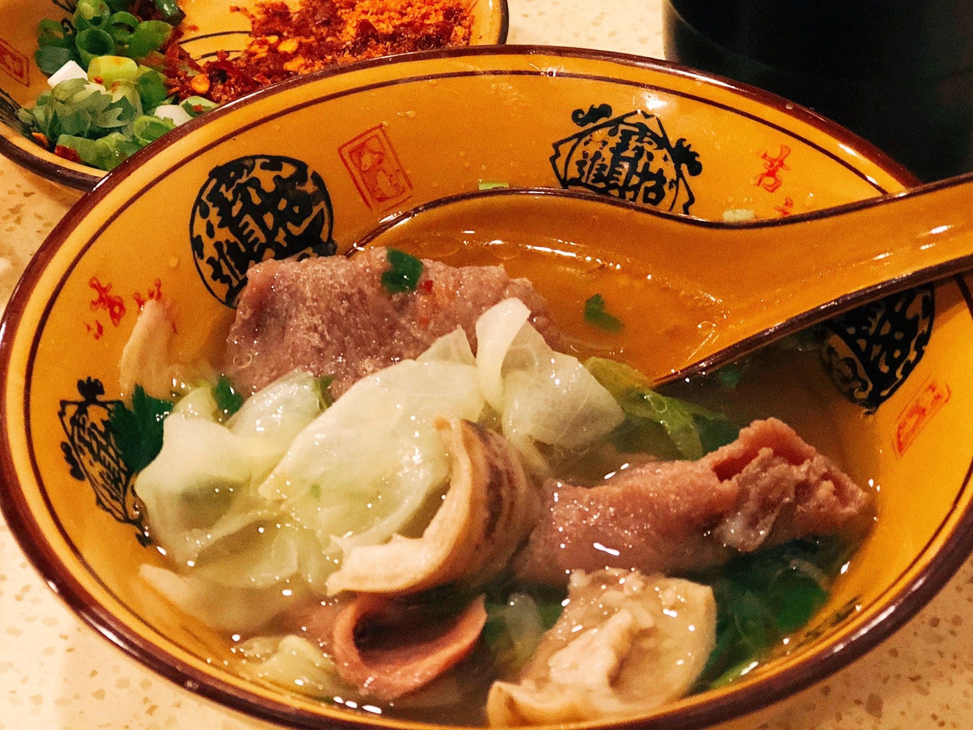 一定要吃的一家乐山翘脚牛肉 因为住在附近 所以来了 来了需要排队 因为是现做的 需要涮菜 所以等待的时间有点小久 我因为一个人 所以点的小锅 包含:牛肉 牛杂 蔬菜 其实小锅两个人吃正好 一个人有点多 还可以额外点菜 人多的话可以点大锅 先喝汤 汤特别清爽 一点都不油腻 牛肉很嫩 牛杂也煮的特别软烂 可以蘸着干碟吃 也可以直接吃 川菜中的小清新吧 适合不能吃辣的人