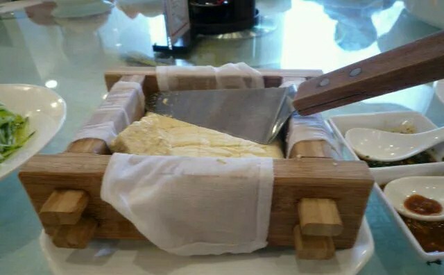 其实笔者觉得这个豆腐还是蛮好吃的,不用蘸料也可以。还有一个汤!放在洋瓷缸子里,怀旧【口味】:自制石磨豆腐,这个作法感觉很像陕北老豆腐的做法!也是一个小方笼,然后配上调料供选择。其实笔者觉得这个豆腐还是蛮好吃的,不用蘸料也可以。还有一个汤!放在洋瓷缸子里,怀旧。