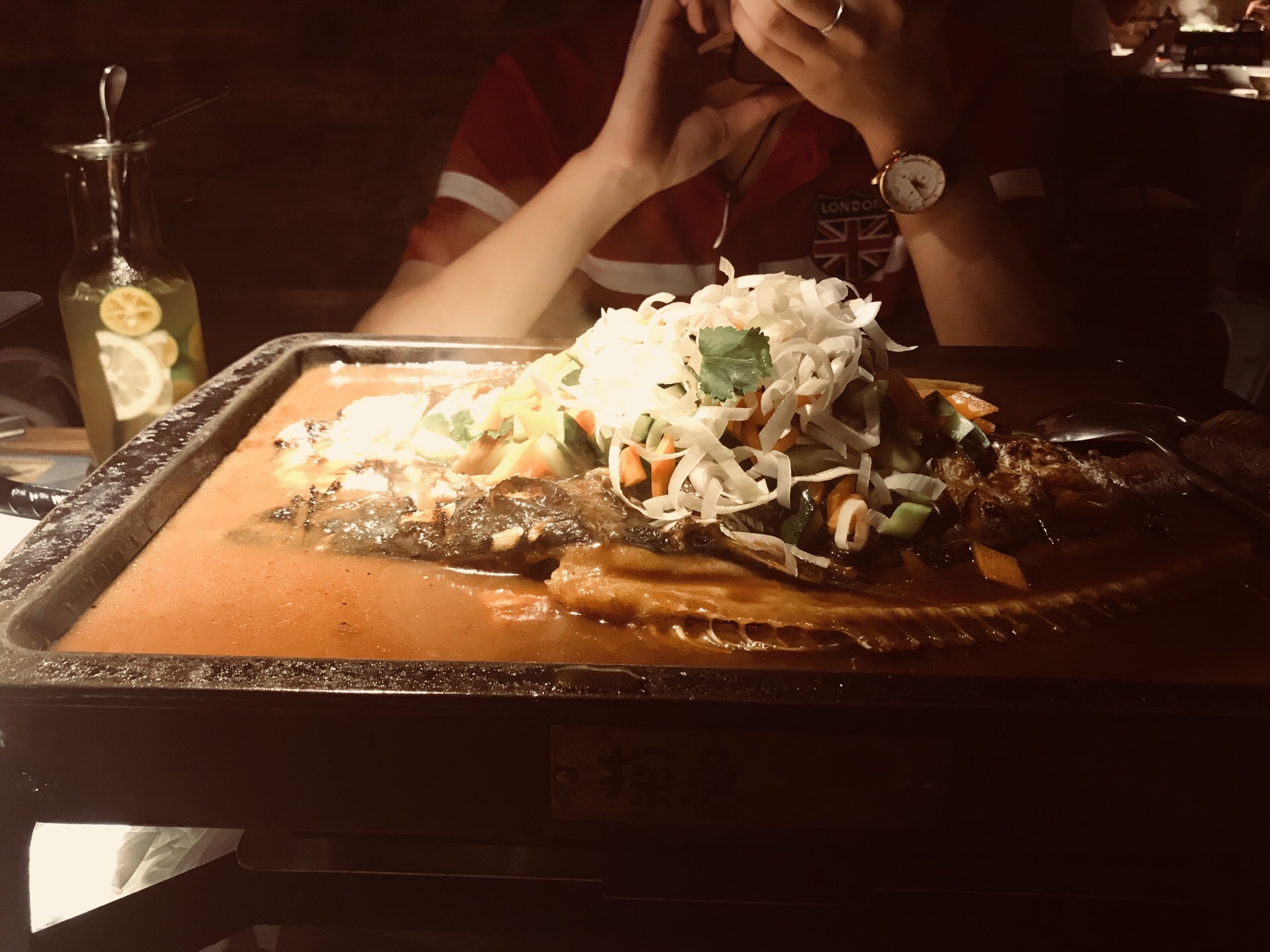 一条消费后超过了一年的点评 各种烤鱼吃完还是对探鱼比较有印象的 .【地址】 正佳广场7楼 【环境】 怀旧的装饰,暖灯系列,有种情感上的呼应和记忆,能唤起一些童年美好的回忆。 【出品】 #酱香烤鱼# 不辣星人的大福音啊。青瓜红萝卜洋葱作为点缀也是不错配菜,鱼肉鲜甜嫩,鱼皮又脆又香,酱香味配酱在吃完烤鱼直接刷喜欢吃的各种菜和菌类,味道超级入味。 #蒜泥青瓜# 青瓜作为凉菜一直是招人喜爱,蒜泥醋味浓郁,青瓜脆甜,很够消食,反正一盘都不够我吃 #拌凉皮# 对于不辣星人这道菜除了辣,凉皮没味道,其他不知道怎么做点评☹️ #冰粉# 作为吃鱼必须点的冰粉,绝对要夸一夸,超级解辣 【总结】 探鱼作为烤鱼界的领先者,整体感觉还是不错的,无论是食材的新鲜程度以及服务,环境,都是值得推荐