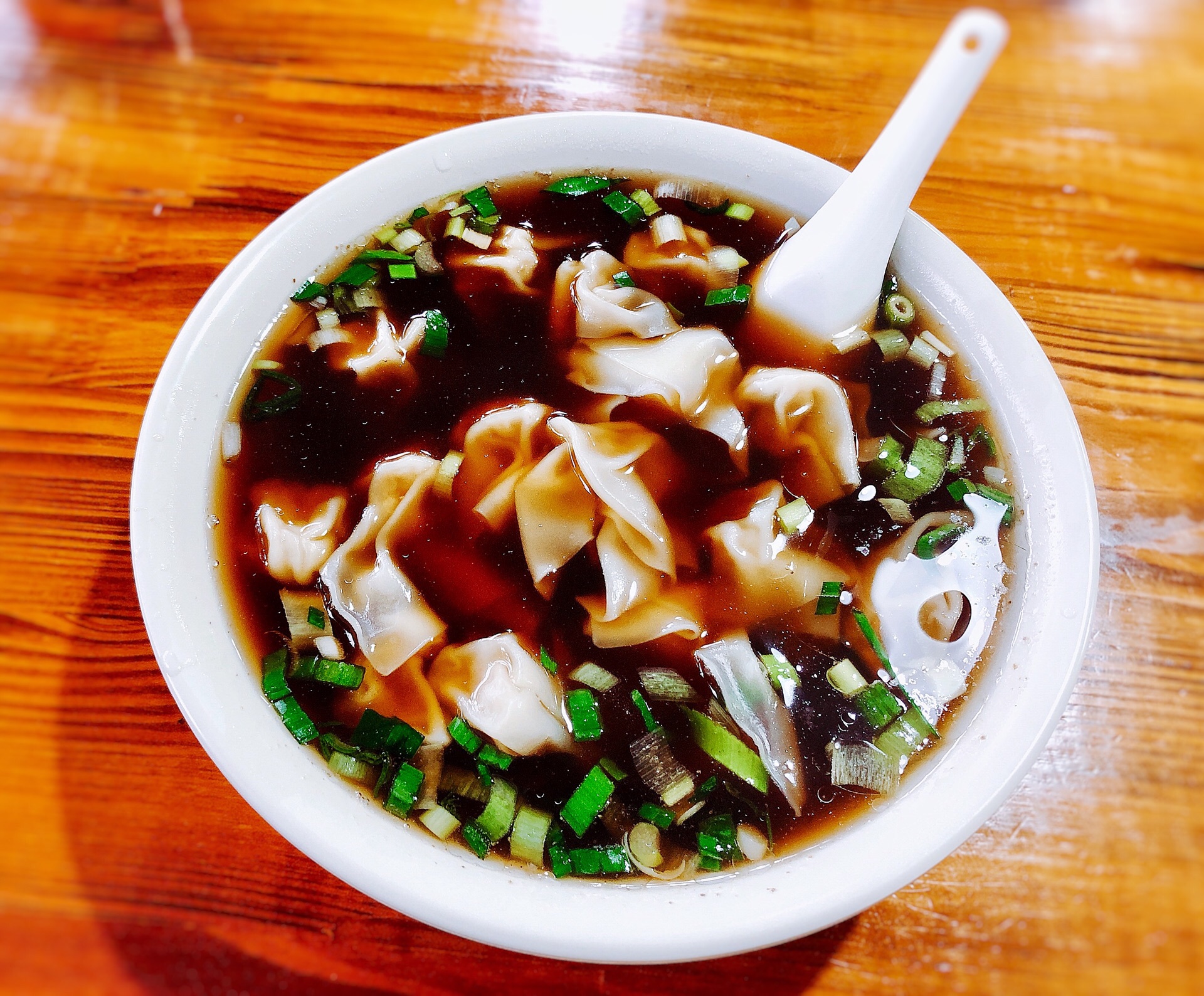 这汤看着很咸,其实倒也还好,吃到后面觉得还挺好吃的。走了好多路肚子还不饿,就到这家随便吃点解决晚饭走了好多路肚子还不饿,就到这家随便吃点解决晚饭。点了烧饼、豆腐花和馄饨,前面两个都比较一般。酱油汤馄饨是第一次吃,馄饨个子类似上海的小馄饨。这汤看着很咸,其实倒也还好,吃到后面觉得还挺好吃的。