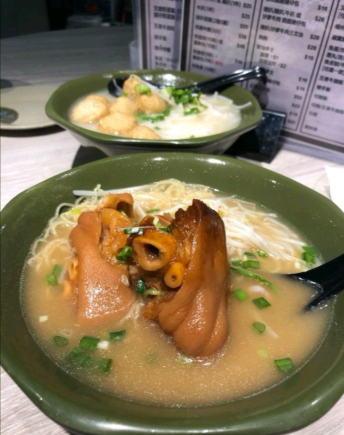 网友2019-09-21...8港币,有奶茶和一碗面,要了猪手面还有我鱼蛋面,感觉鱼蛋面好吃一点,猪手烧的不是太软,鱼蛋很Q套餐的价格还真的不贵,午市套餐48港币,有奶茶和一碗面,要了猪手面还有我鱼蛋面,感觉鱼蛋面好吃一点,猪手烧的不是太软,鱼蛋很Q。