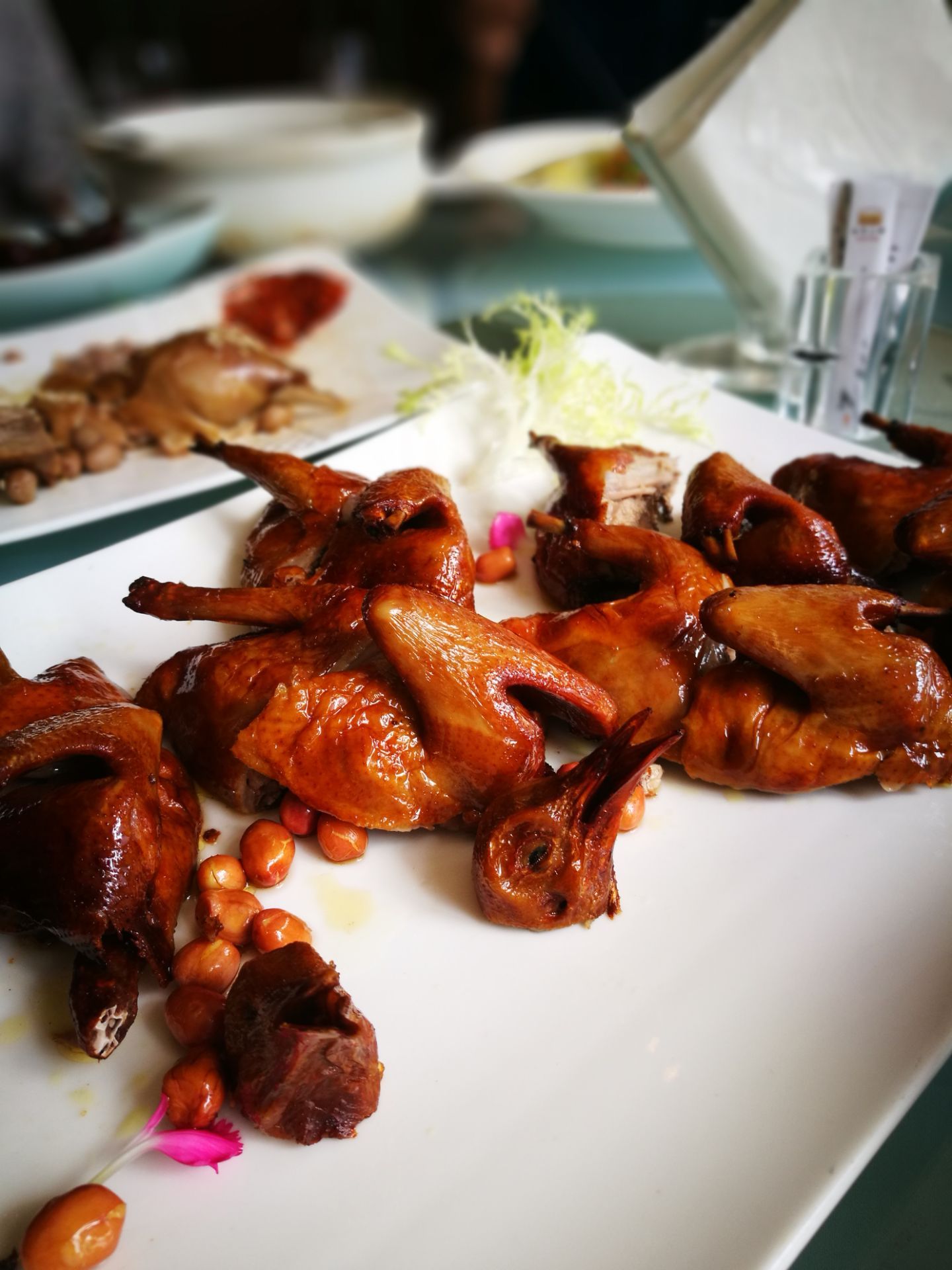 点了一桌子,其中有几样菜味道还不错,那个烤乳鸽就很好吃,外焦里嫩,还带点椒麻味