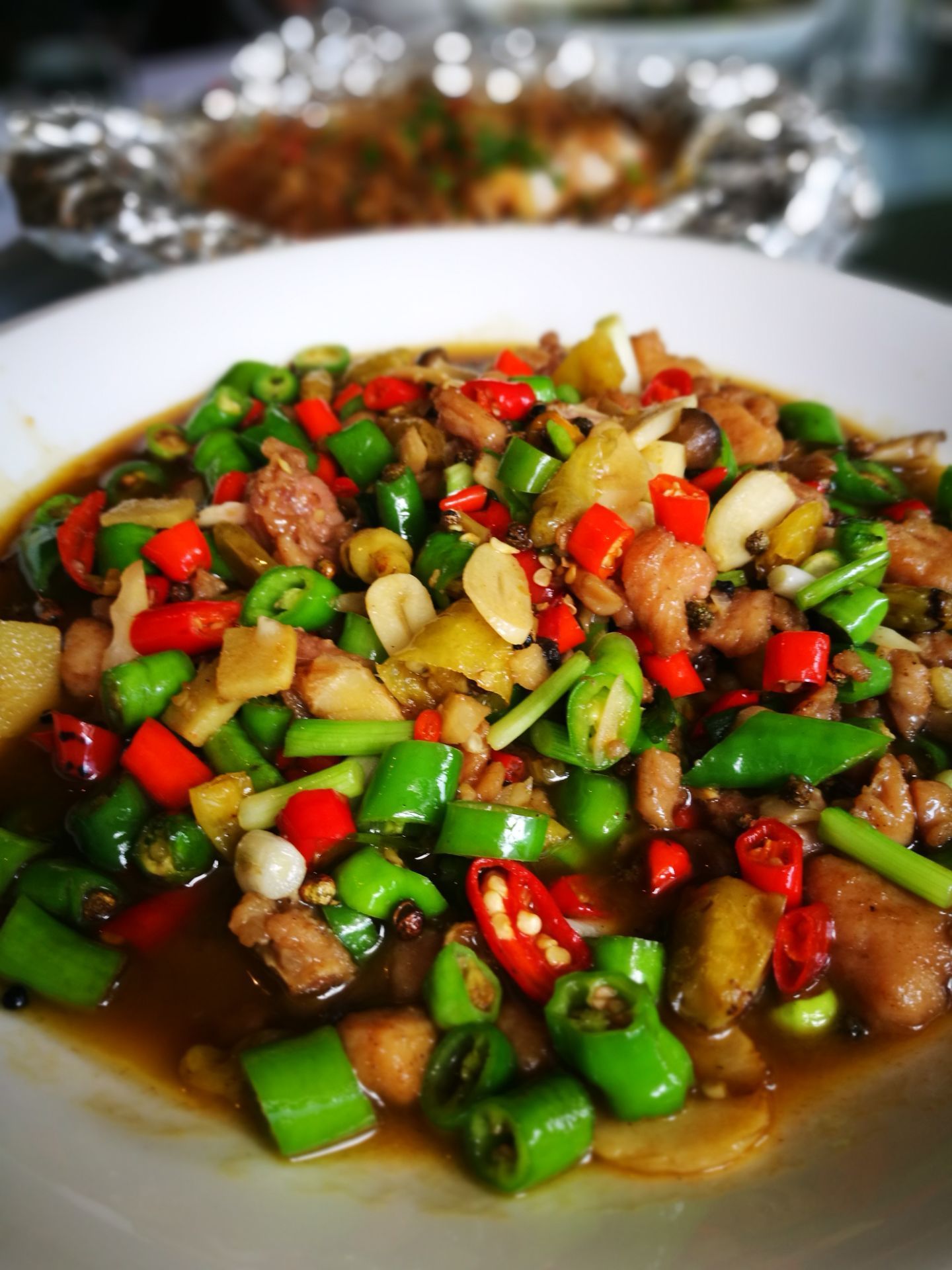 中午几个朋友到这里聚会,门面不是很明显,因为在三楼上,门面也不大,不过里面堂子还不小,就是色点有点中式,感觉有点陈旧。点了一桌子,其中有几样菜味道还不错,那个烤乳鸽就很好吃,外焦里嫩,还带点椒麻味!还有个粉丝虾也不错,虾很新鲜,很Q弹!