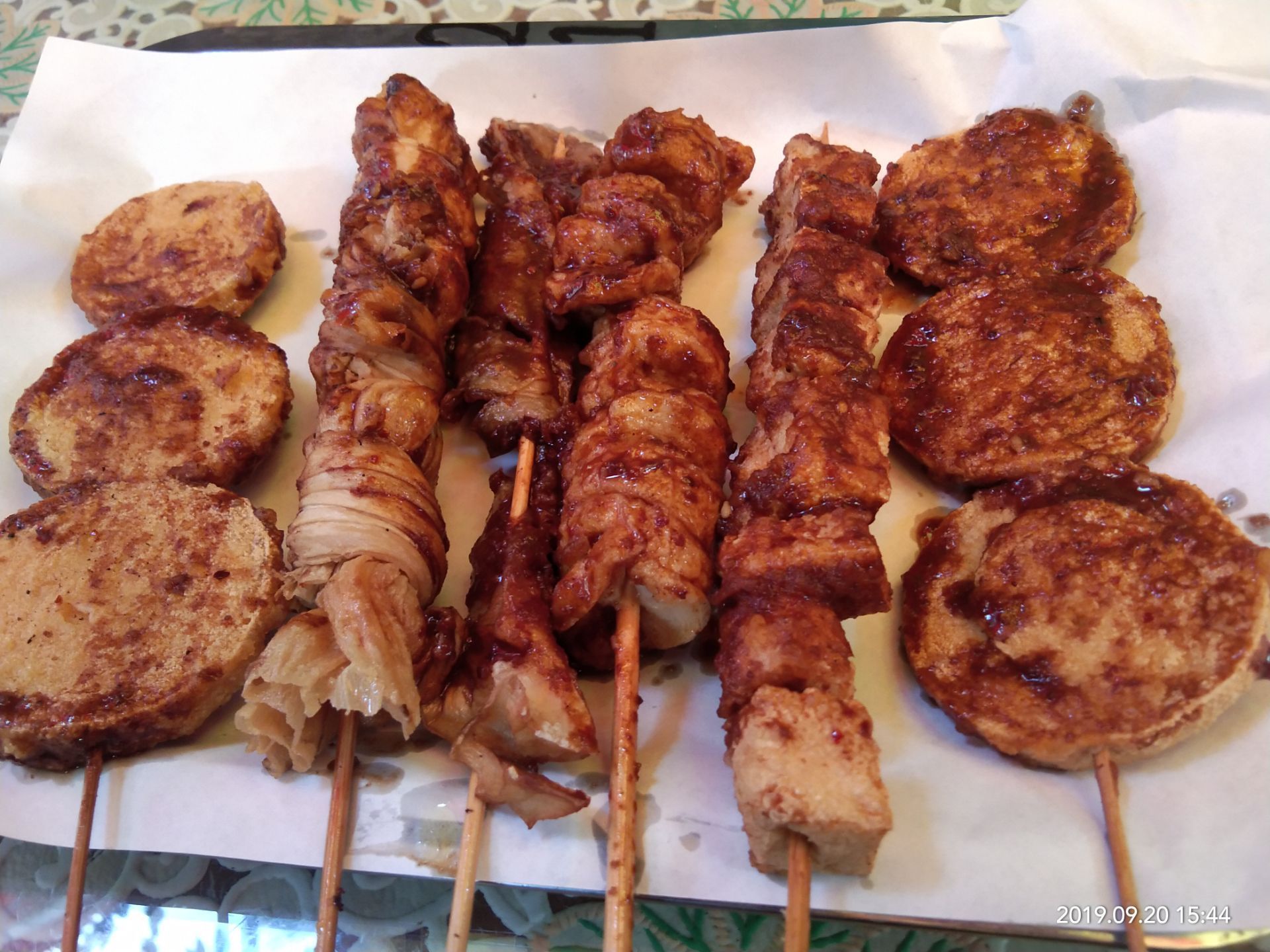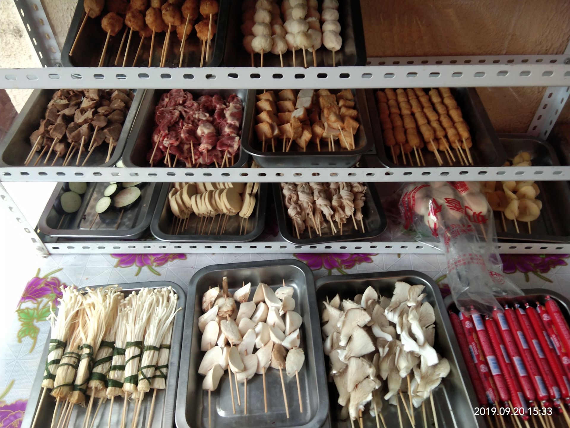 离得近竟然第一次吃,以前经常看到在大学路车站那里,很多孩子一放学就来吃,后来搬家到大院里了 昨天有闲情,下午来试试,大院进门一直往里走,会看到图②,走到里面就是了哦!大叔自己家的院子,搭着棚,好似野馄饨的风格 下午四点开始,大叔听见我打电话,帘子拉开说进来吧,嘿嘿,以为我是大客户,谁知是来打打牙祭,晚饭还要继续的主[呲牙][呲牙] 种类很多,我只选了自己喜欢的,豆制品主角,素鸡,小豆腐泡等,食材被炸过后偏干,吃着香,抹上了一层辣酱,哇哦,不错,就是卫生有点那啥,酱什么的都是裸露在外,毕竟是室外