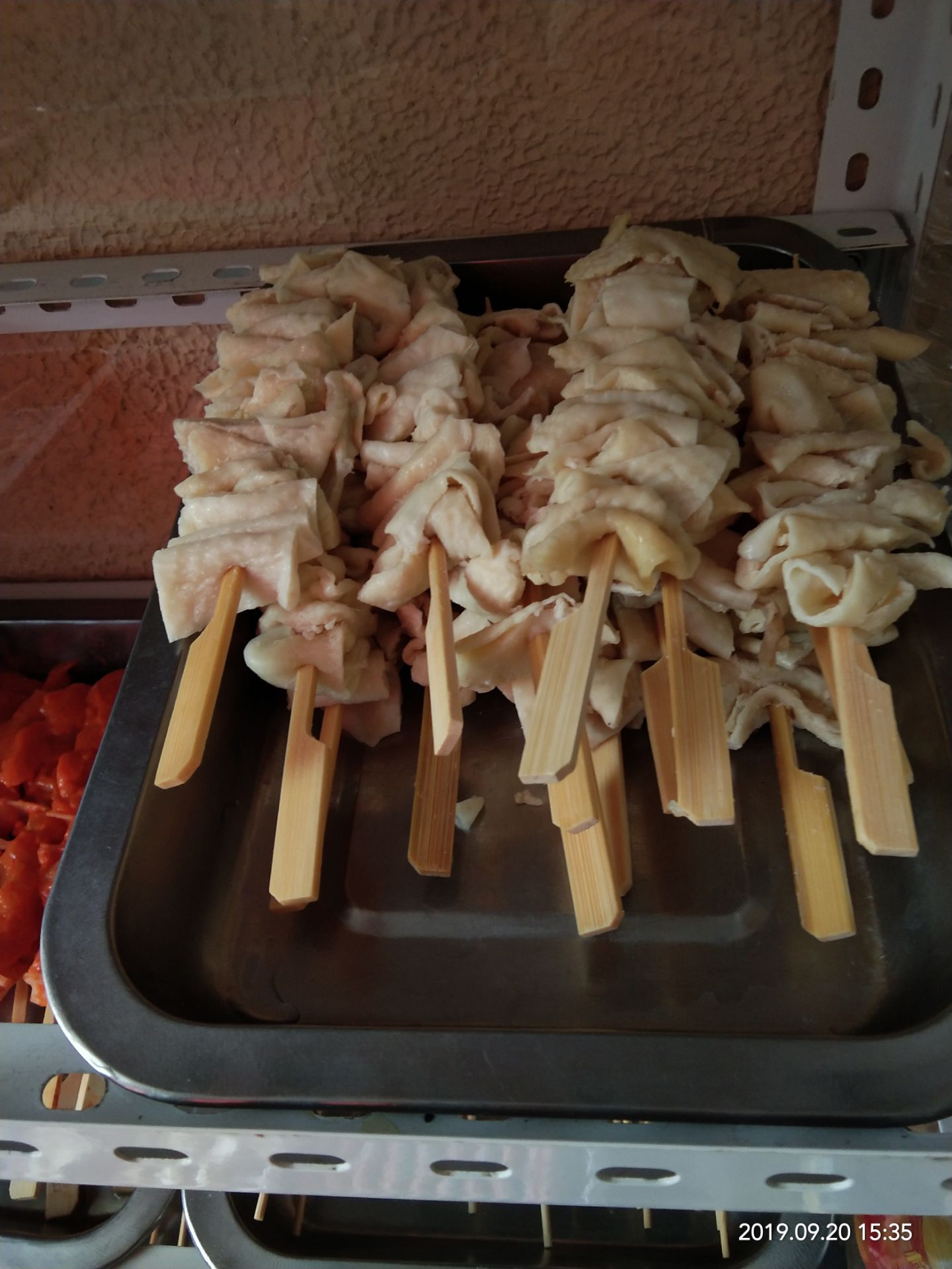 ...后偏干,吃着香,抹上了一层辣酱,哇哦,不错,就是卫生有点那啥,酱什么的都是裸露在外,毕竟是室外