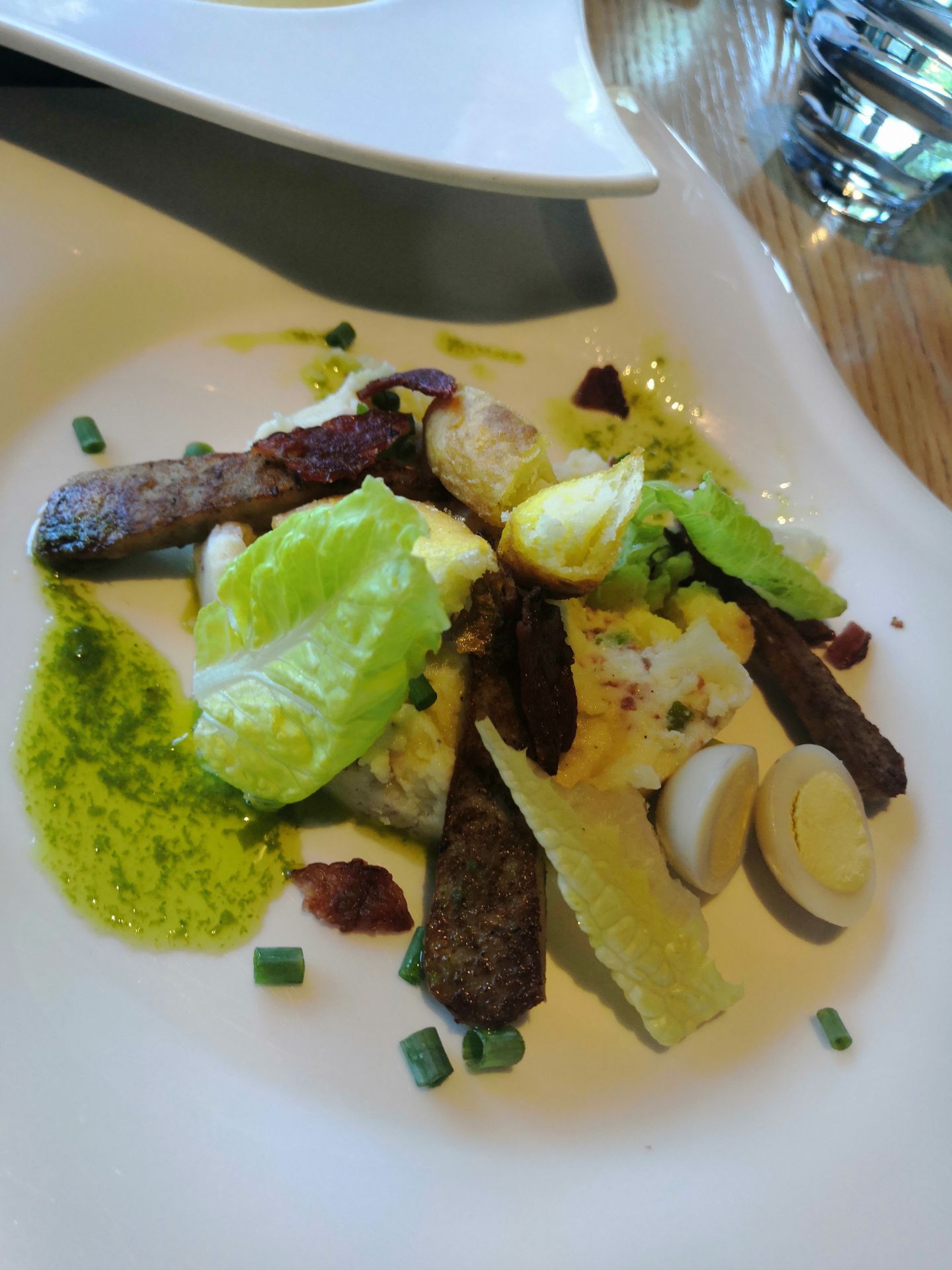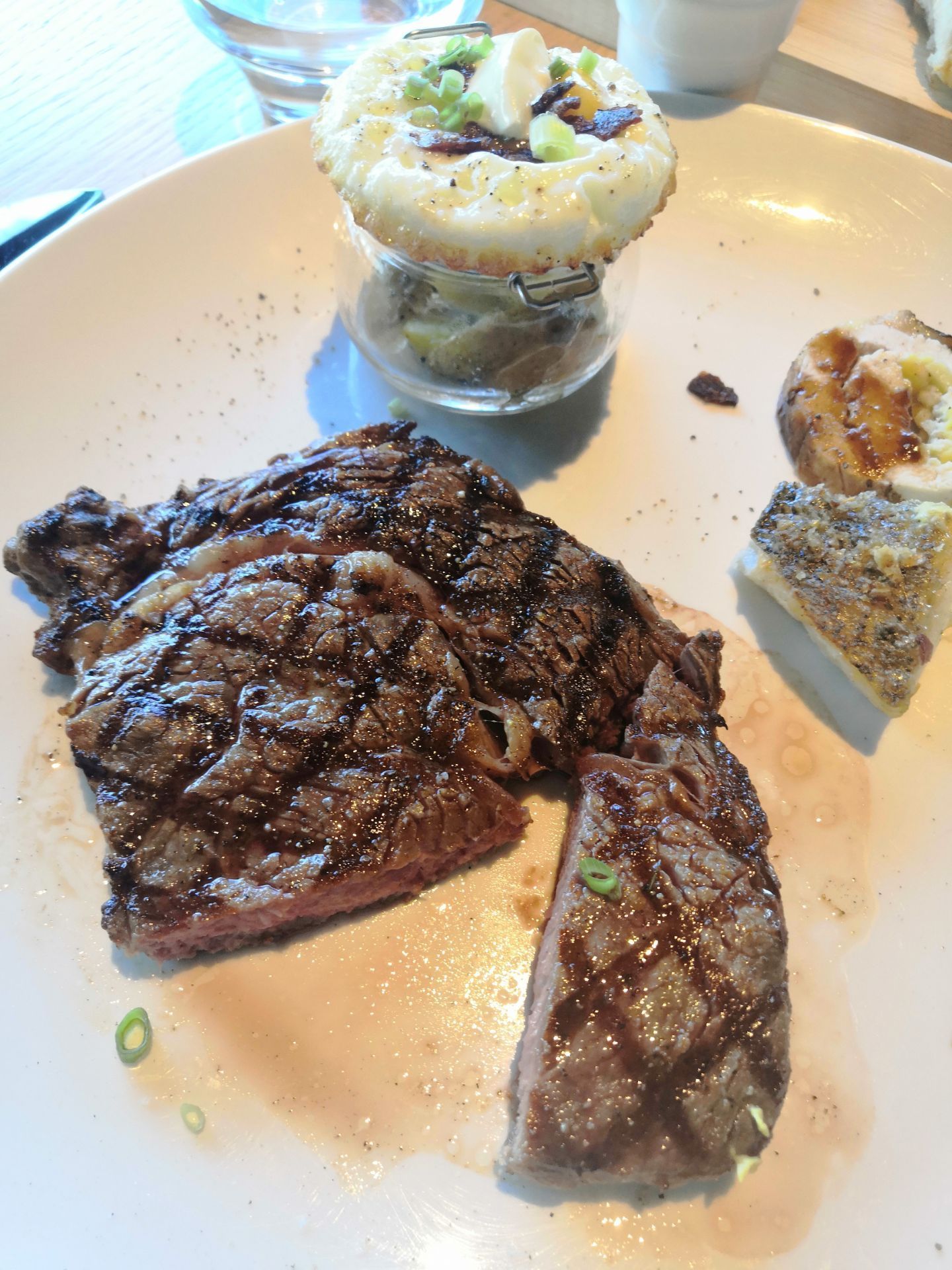 菜品非常丰富~三道的套餐竟然能如此满足(撑) 【口味】牛扒绝对尚佳水准~要了五分熟再过一点~火候掌握的非常准确~感觉最爱的口感就在多的那一刻的火上 【环境】很清静~适合各种需求的场景 【服务】到位且恰到好处