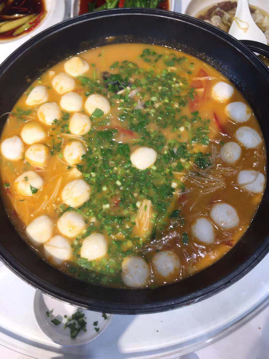 油焖茭白浓油赤酱很入味这次在大富贵酒楼吃饭,环境不错,一楼是小吃,二楼是点餐,价格有点小贵,中午饭点时,人不是很多,点了一份特色金汤鱼圆鱼,鱼头部分烧汤,下半段做鱼圆,汤里面加了金针菇和番茄,还有葱花和香菜,鱼圆很嫩很鲜。油焖茭白浓油赤酱很入味。