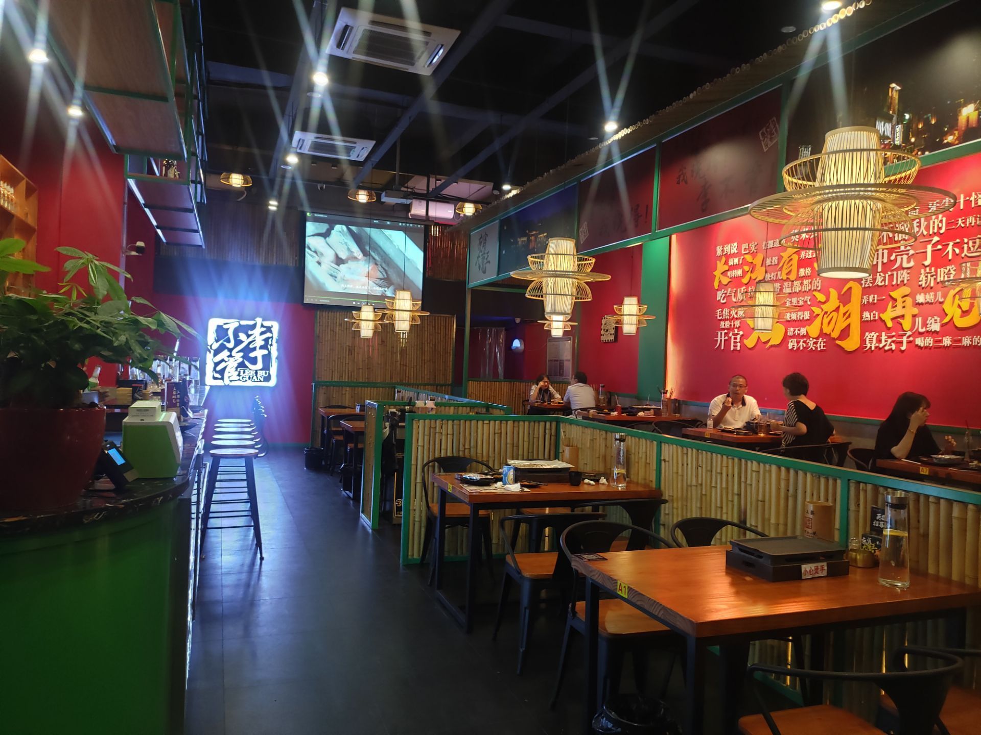 跟着老友又猎新一家夜宵撸串宝地,女生选择夜宵标准除了好吃还有就是环境要好,毕竟还是想优雅的大口喝酒大口撸串嘛!哈哈! 李不管把把烧在公司楼下无意发现,白天没营业只看到门面不错的说,看名字理解应该就是一把一把烤一把把吃,好过瘾的感觉! 点了几个服务员推荐的比较特色的,筛子牛肉,牛大肚,红柳羊肉串,猪鼻筋,生蚝貌似烧烤必点,不过特别推荐几样个人觉得不错的 【猪鼻筋】真的是烧烤界中的扛把子,一头猪身上只有2根猪鼻筋,咀嚼的时候在嘴里咔呲咔呲作响 口口脆嫩筋道 【筛子牛肉】超大号筛子那么大一块牛肉,看着很硬的样子,吃起来肉质无比鲜嫩,一口下去牛肉原汁留香 【红柳羊肉串】第一次吃红柳烤肉是在西安,一吃便爱上了,用红柳枝串着羊肉烤制,羊肉的里渗入了红柳的香味百吃不腻! 桌上备有保温烤盘,让食物一直保持在一定温度,保证口感,非常贴心哦!
