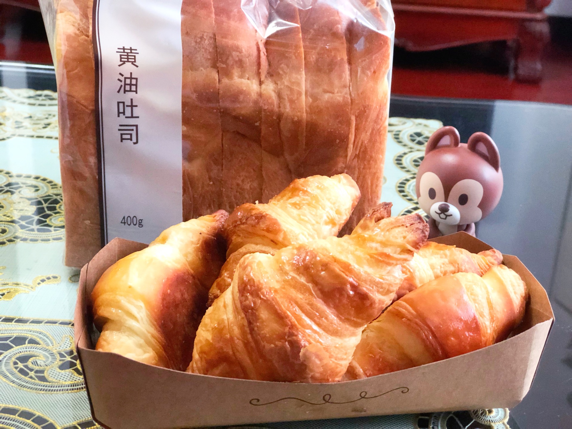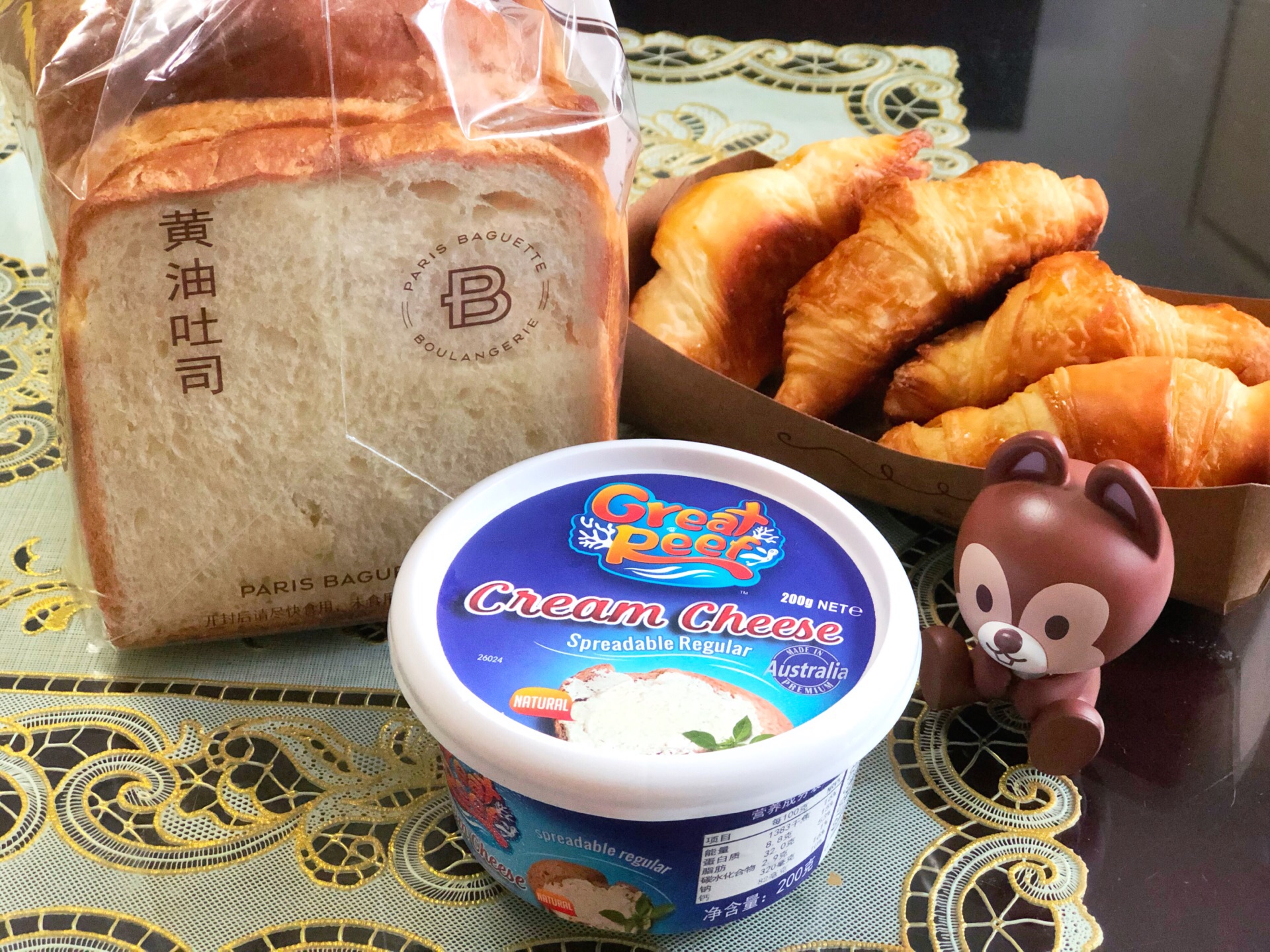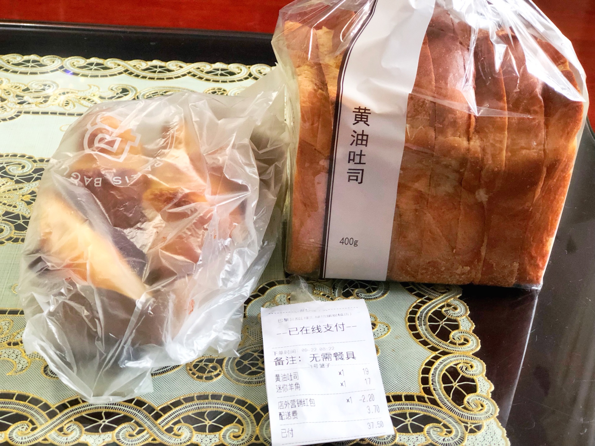 台风天+下雨天,外卖小哥哥送外卖辛苦啦! 想吃吐司啦!于是选择了巴黎贝甜外送。 不看不知道,原来巴黎贝甜有好多好吃的呢,蛋糕和面包看着都不错,好多年没来了,新品挺多的。 黄油吐司配山姆买的奶酪,完美。 迷你羊角还可以,就是不大酥脆。