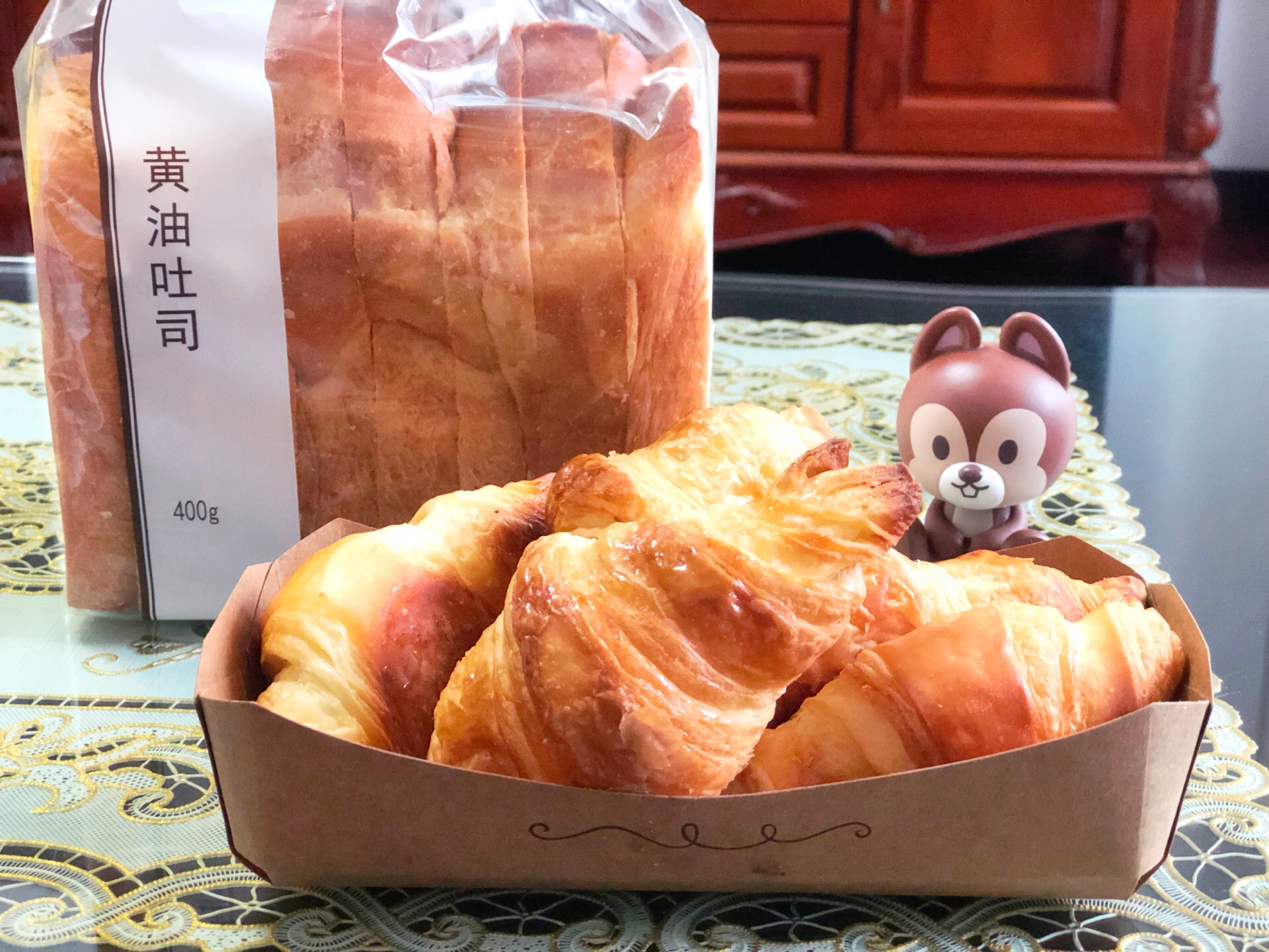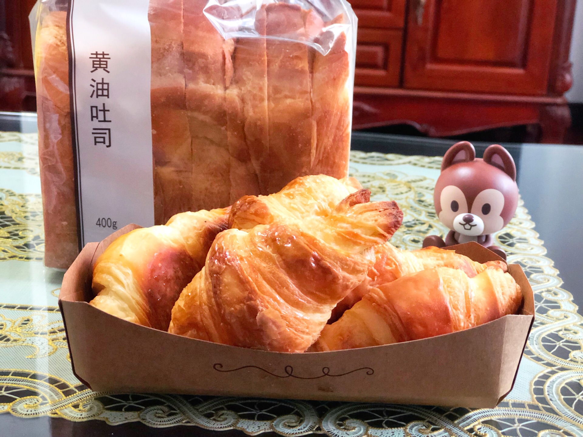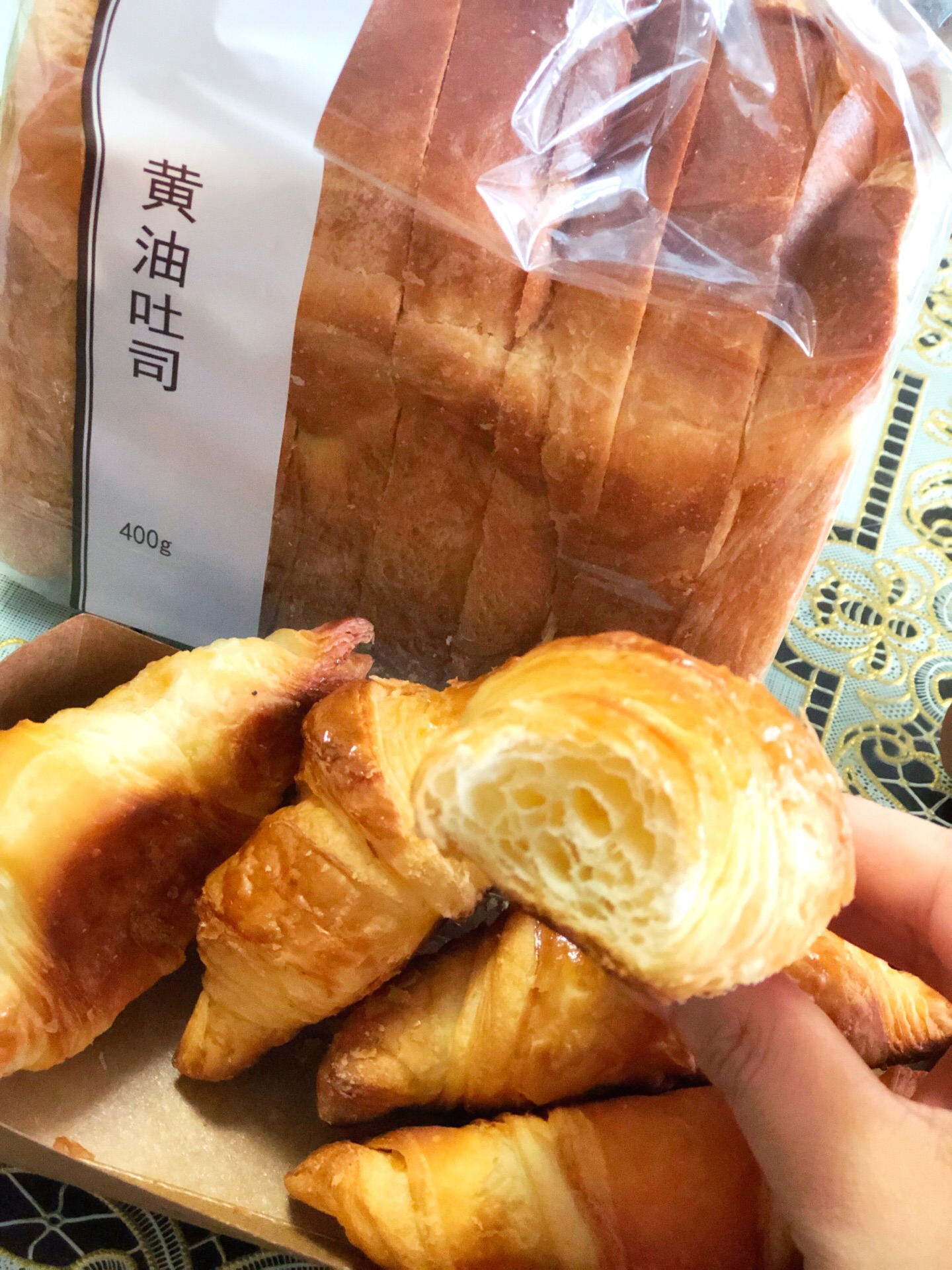 台风天+下雨天,外卖小哥哥送外卖辛苦啦! 想吃吐司啦!于是选择了巴黎贝甜外送。 不看不知道,原来巴黎贝甜有好多好吃的呢,蛋糕和面包看着都不错,好多年没来了,新品挺多的。 黄油吐司配山姆买的奶酪,完美。 迷你羊角还可以,就是不大酥脆。