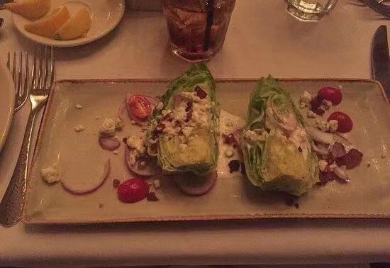 我过去多次去这家很棒的餐厅和酒吧,周二晚上在这里吃了一顿商务晚餐。布列塔尼犬的晚餐前饮料服务很好。她既友好又能干。菲利普,我们餐厅的服务员也很好。看到他们改变了晚餐菜单,我感到很失望。他们完全不把色拉当作开胃菜。唯一能得到沙拉的方法是用一种蔬菜来点菜。我吃了花椰菜熏鸡,味道很好。另一位同事说,他们很喜欢这种虾馅。这是一顿很好的饭。他们还有一个非常大的酒吧区,旁边有舒适的座位。他们晚餐菜单上的变化,特别是色拉对我的影响。他们的选择与许多其他牛排馆不同。