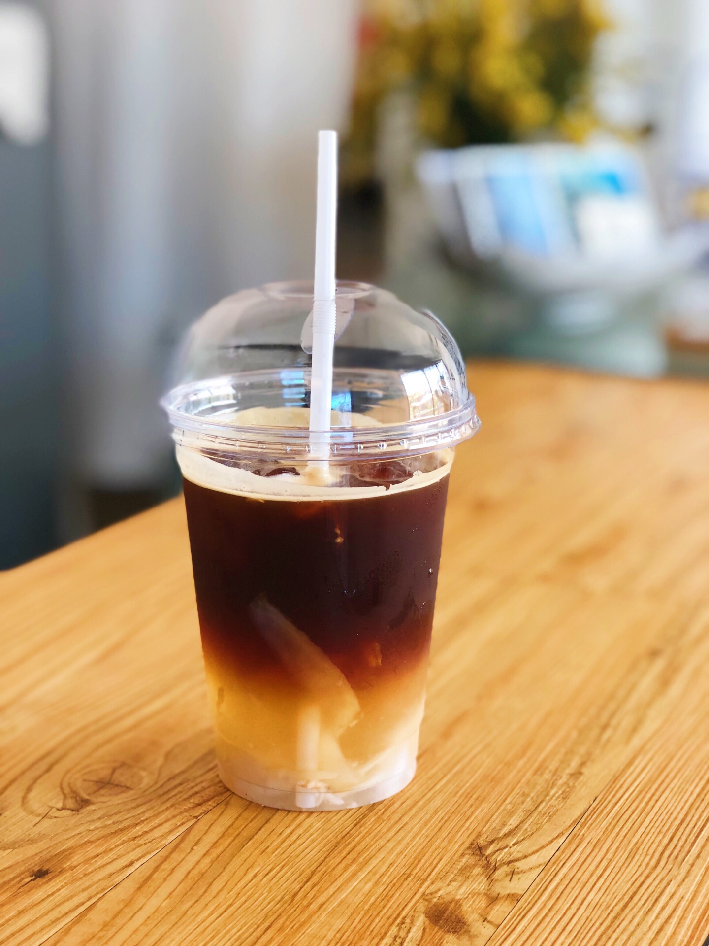 薄荷岛上的咖啡馆不多,这家在酒店不远,距离海滩大概10分钟左右的样子。 老板是北京人,说了一口京腔。而且绝对是个实在人,直接说椰子咖啡不好喝。这么说自家咖啡真的好吗。。。 椰子咖啡 其实这个还不错喝哦,和国内一些冰椰子美式口感差不多,真的用新鲜椰子汁做的,应该还比国内更天然一些,价格也更便宜,有明显分层。 奶茶 这款真的就一般了,奶茶有点寡淡。 据老板说他主业是潜水教练,副业才是咖啡馆老板。