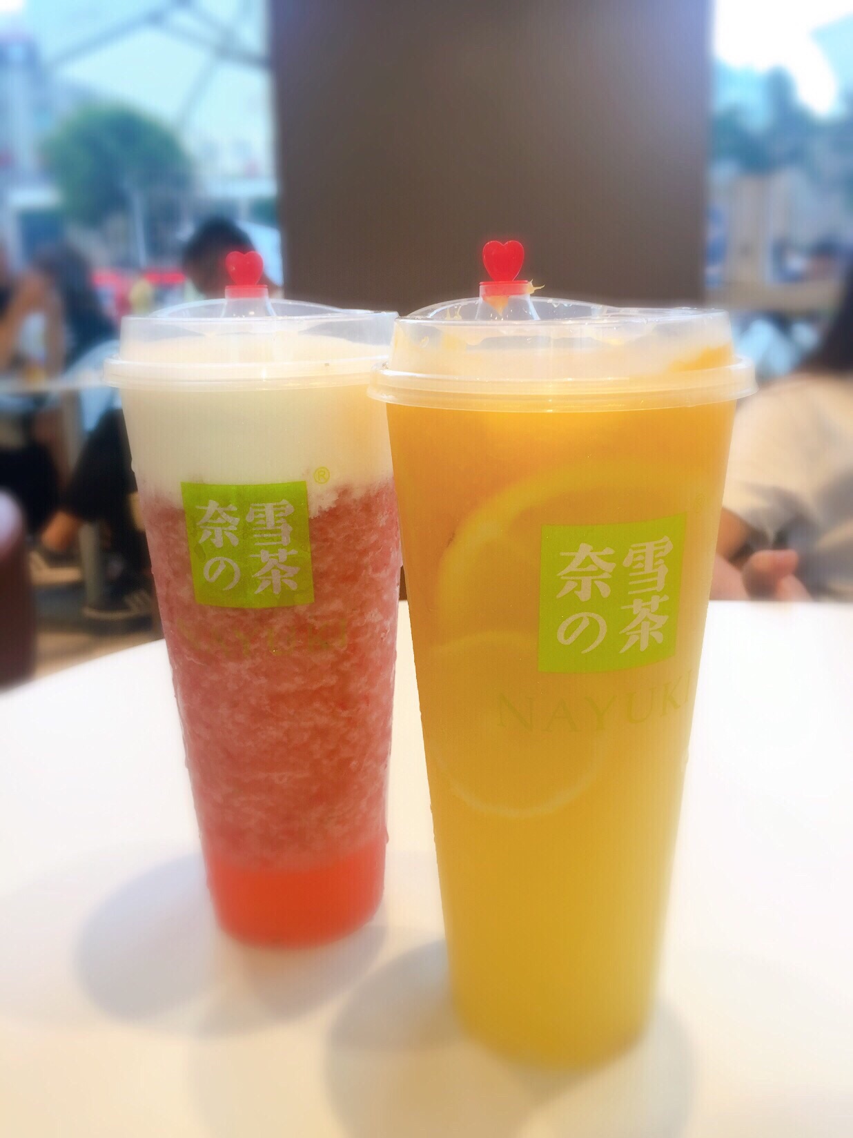 奈雪的茶(浦西万达店) 泉州的第一家奈雪,开在了泉州浦西万达一楼一号门,已经开业一阵子了,几乎还是天天排队,不过点单速度挺快的,但是等领饮料估计要10来分钟,也蛮快的。 店面空间挺大,但门里门外都是人,座位位置其实还好,几乎都能找到座。 饮品: 霸气芝士草莓 可以两种做法,选了沙冰做法,正常甜度,奶盖有厚度,咸奶盖,果肉多,口味整体不腻。 霸气橙子 也是可以两种做法,这款选了果茶做法,橙子果肉多,但喝完最后都剩在杯底了,味道也是清爽不腻。 霸气榴莲 选了最贵,不选最对♀️,面包有嚼劲,但味道觉得一般。