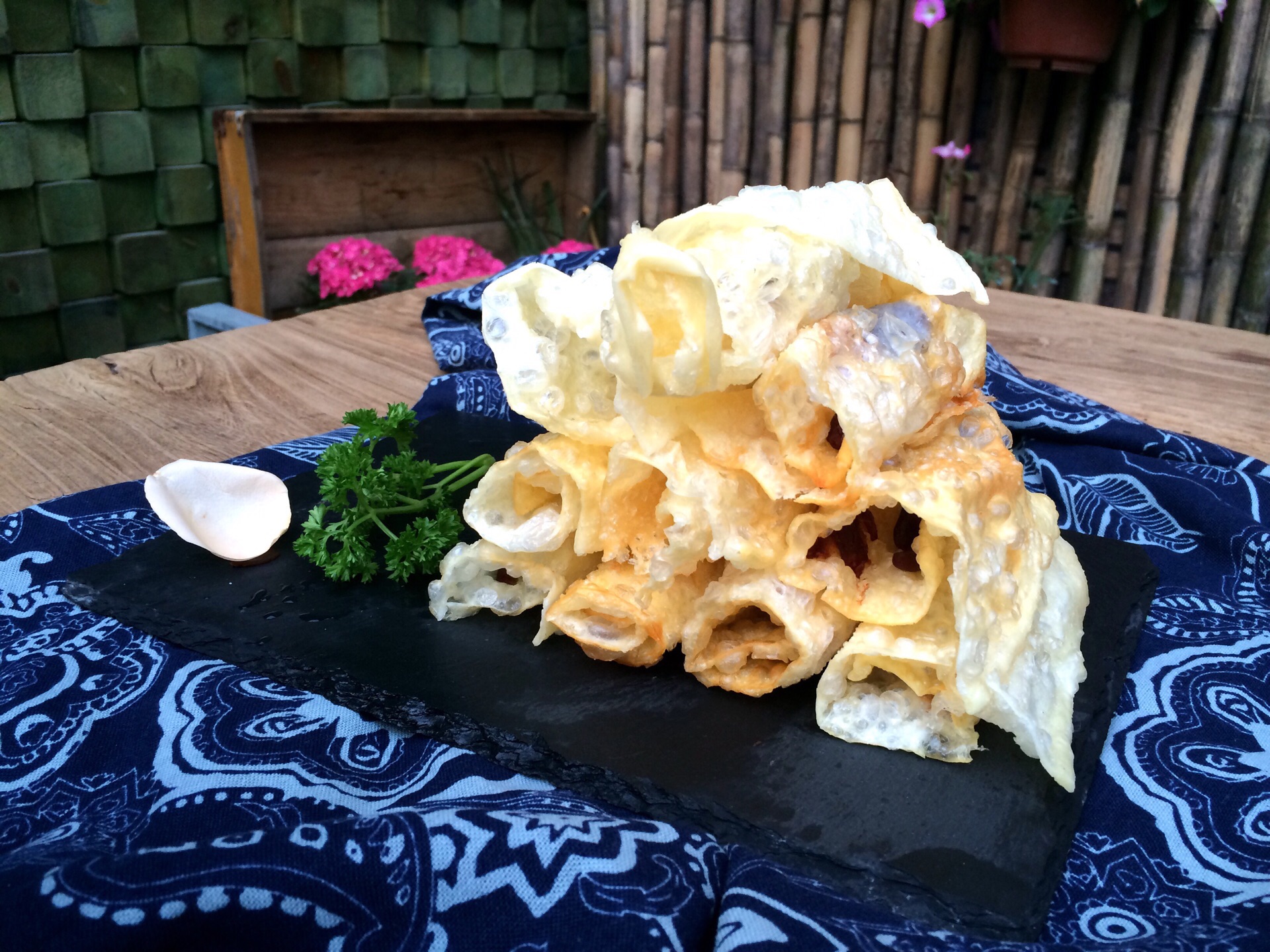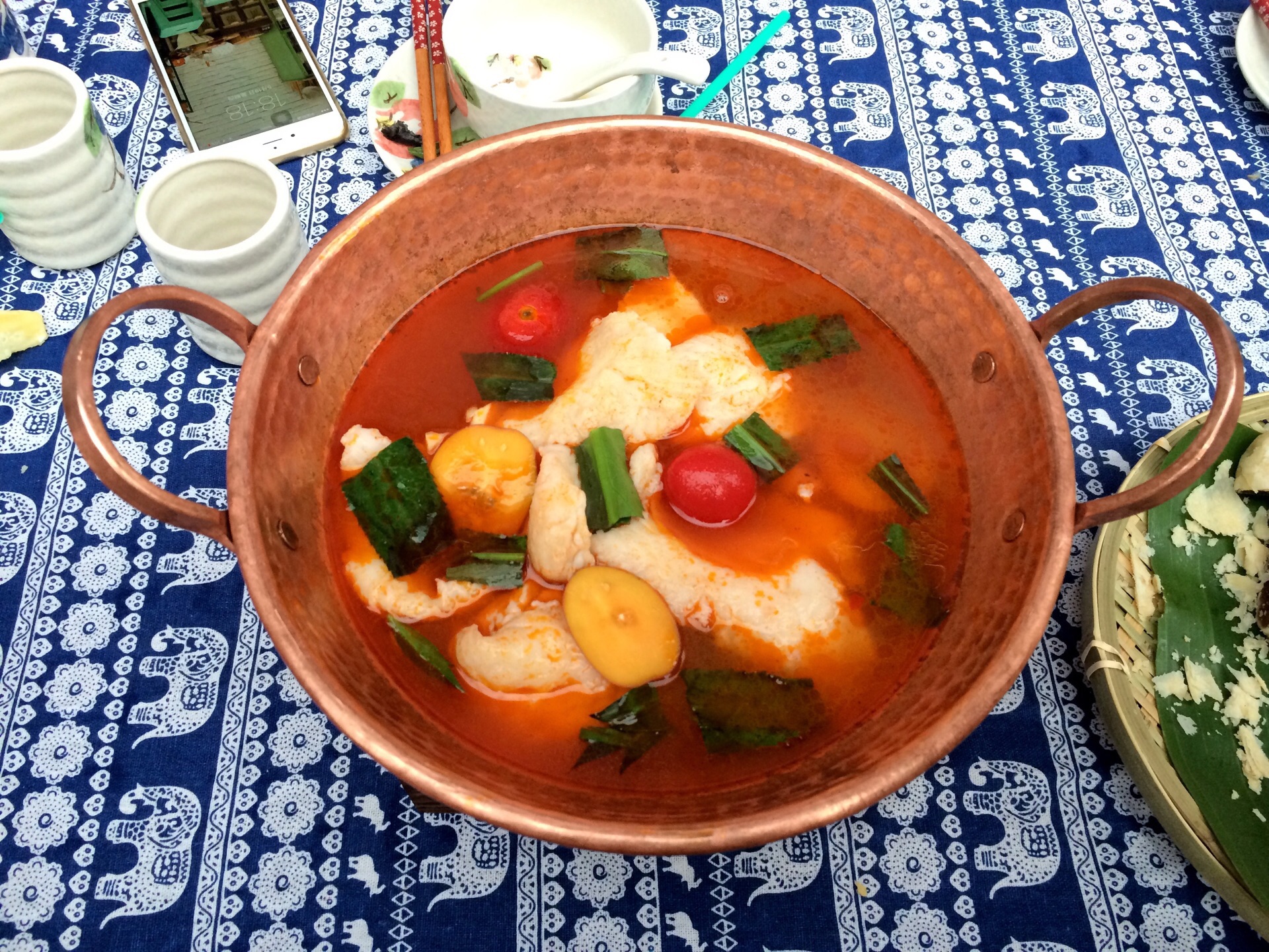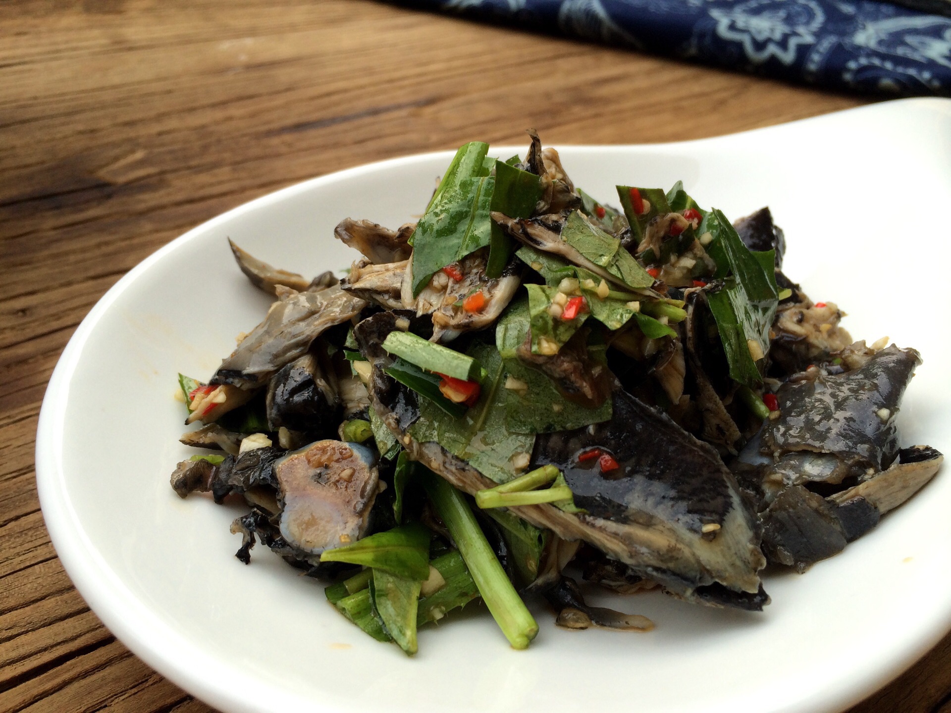 彩云之南,总是给人各种美好的想象,鲜花四季,温暖如春 凉拌折耳根,就是鱼腥草,堪称中国版的纳豆,不过云南人都非常推崇鱼腥草,建议大家可以试一下,不要被这特别的味道吓退 傣味柠檬鬼鸡,墙裂推荐,乌骨鸡竟然这样好吃,非常清爽的一道凉拌菜 仓山雪花乳扇,类似奶酪片炸酥,一定要趁热吃,不然会变的软塌塌的,乳香浓郁 普洱海菜花炒火腿,彩云轩的蔬菜几乎都是没见过的,这道菜口感有点像空心菜,但口感更软一些,味道很好,可能是因为口感比较接近于我们平常吃的菜,更容易接受吧 干巴藕丝,藕丝炸后与芹菜等混炒,这样的做法还是第一次吃到,藕丝变的异常脆嫩,非常好吃,推荐 板蓝根,冲剂大家都喝过,但炒着吃的板蓝根还真少见,原来这药真是苦的,不知炒着吃能预防感冒吗 傣味香茅草烤罗非,当天特供,罗非鱼要空运过来腌制很长时间,但前一天刚好卖完,刚到的腌制时间还不到,老板特别让我们尝下,鱼肉很嫩,虽味道还没完全进去,但依旧不失为一道美味 天麻汽锅鸡,汽锅鸡也是云南菜的一个特色,清爽鲜美,鸡汤和鸡肉一点都不油,健康养生 版纳野果酸汤鱼,看起来像番茄鱼,但用料不同,味道自然不是普通的番茄鱼可以比的啦 芭蕉花炒腊肉,惊讶于芭蕉花居然长这样,一开始以为是笋,果然特别 丽江玛卡炖排骨,大补的玛卡一加,身价立马飙升 金麻雀花炒蛋、老昆明大酥牛肉、云南火腿焖江柄瓜,也都是非常有特色的云南菜 鸡丝凉米线,云南米线自然少不了,加入了珍贵菌类鸡枞,让这碗米线变得不平凡,特制的伴酱混合鸡丝、青瓜丝等配菜,米线变的多彩起来 布依族花米饭,糯米饭用不同蔬菜汁或鲜花汁染成五颜六色,蒸熟后蘸炼乳 鲜花饼,云南回来必不可少的伴手礼,店家将鲜花饼一分为二,并稍加烤制,香气四溢,玫瑰花馅特别多美味 原味泡鲁达,特意采购的越南吐司,配上椰奶和椰丝,制成很有特色的一道甜品,不腻口 野生酸角洛神花汁,酸甜味的特制果汁,清爽可口又美容养颜