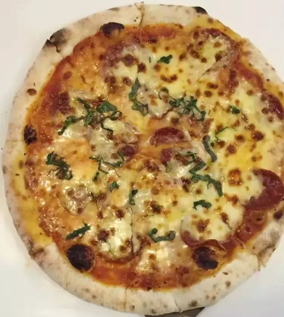 店主是用砖窑烤,味道果然和快餐店的不一样,饼皮够薄,猪肘披萨里面的猪肉非常Q弹,香肠也不错味道还是不错的,披萨薄底,分量比较足,内容丰富。店主是用砖窑烤,味道果然和快餐店的不一样,饼皮够薄,猪肘披萨里面的猪肉非常Q弹,香肠也不错