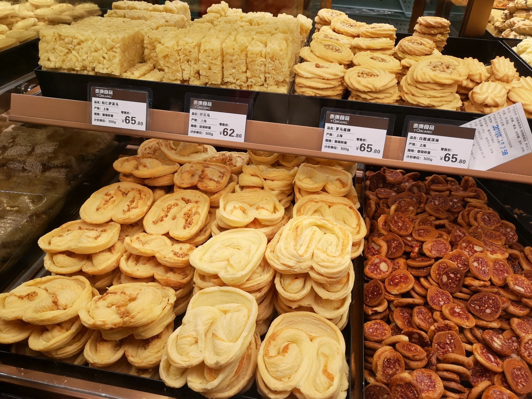 泰康食品算是上海的老牌子店,原本我是不知道的还是本地朋友推荐我去买。买了比较出名的蝴蝶酥等点心吃,价钱不算太贵,一试无妨。味道我还可以接受没有想象中的甜。我在买的过程中看到比较多游客过来买当然也有本地人,那应该是可以的。