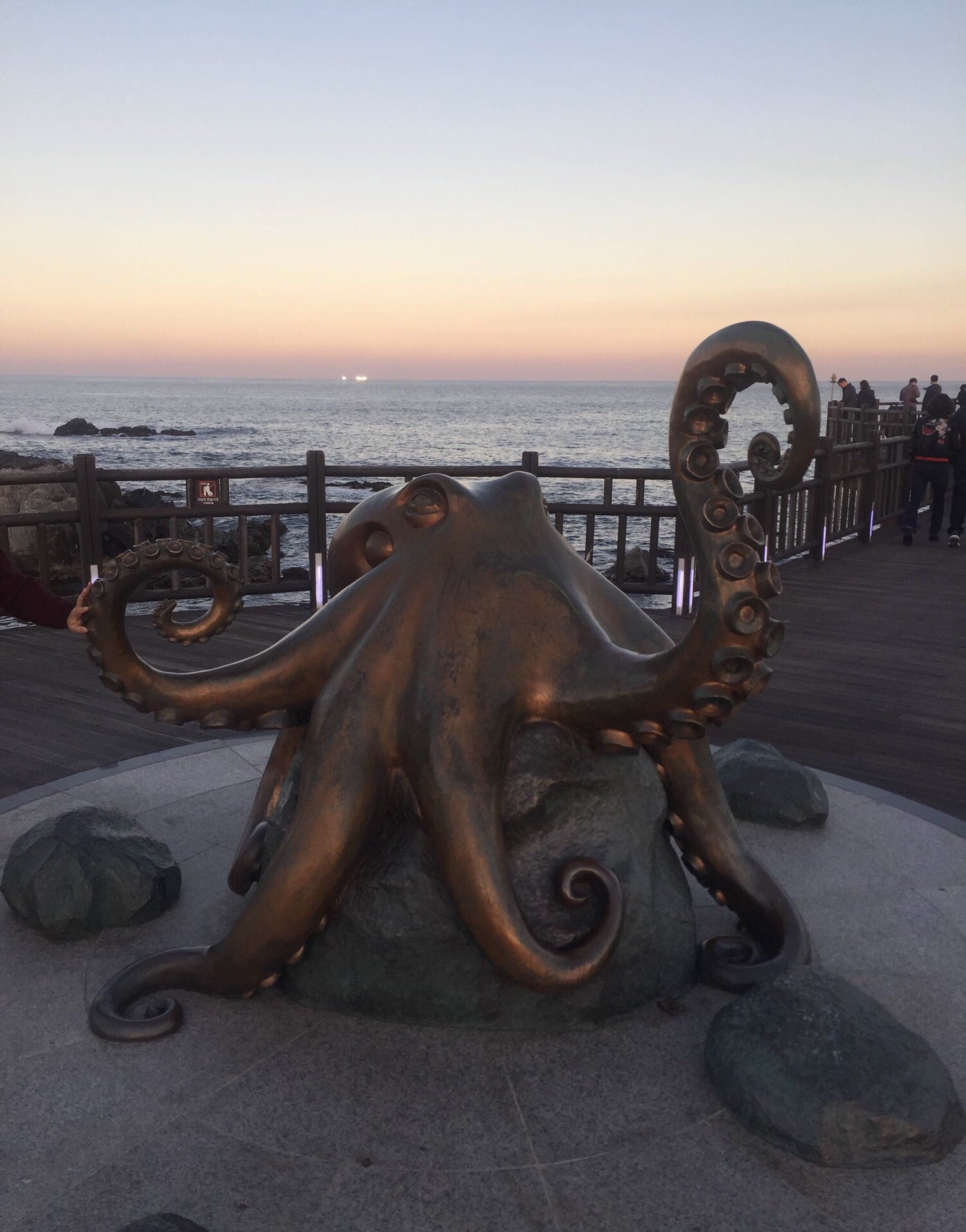 浦项市虎尾串迎日广场,一个观赏日出日落的绝佳去处,落日余晖,美不胜收!日出广场作为新千年韩民族迎日庆典举办的场所。广场中最引人瞩目的要数纪念造型物相生之手了,也被称为“托起虎尾串之手”,整个造型使用了青铜的材质,不仅仅象征着大海和陆地的和谐相处,还有这非常好的意义。这里是韩国的最东边,每一天最早迎接太阳的地方。也是个朴素可爱又美丽的小渔村。闭上眼睛,吸着空气里海的味道,感觉好像...