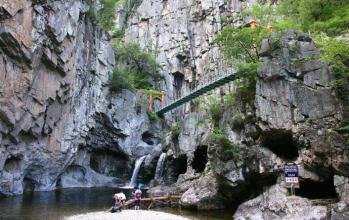 景观最为壮丽的就要数第六瀑布观音瀑布和第七瀑布莲山瀑布了,在观音瀑布的周边有观音台、仙日台、月影台、神仙台等景观,还有倾泻下来的瀑布水塑造而成的观音窟。进入瀑布内部,可感受到水柱倾泻而下的震撼力,令人心旷神怡。在观音瀑布的上面有一高30、长40米的吊桥,穿过后即可到达莲山瀑布。莲山瀑布是清河谷中规模最大的瀑布,周围立有绝壁,景色尤为壮观。而倘若沿观音瀑布的前方绝壁走上15分钟,则可见到另一隐藏的瀑布,这便是隐瀑了。