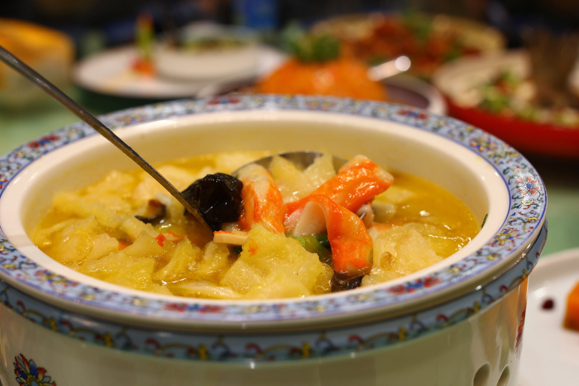 在大口吃肉里清真馆子总能轻易俘获我,老南京就好这一口回民清真味。 清心阁 月安街24-6号月安生活广场内 霸王羊肉肥瘦有致,焦香肥美,尽享手持撕咬的快感。 大盘鸡油润细腻的鸡肉和炖煮得出沙的土豆,配上吸满汤汁的宽面皮,妥帖。 酸菜黑鱼片主菜都很优秀,黑鱼不挂浆的细润薄片。 荷花鲈鱼开片与豆腐同蒸,一口鱼瓣肉清爽清香。 奥体附近聚餐合适,午市套餐68四菜也华丽到,每天都要努力加餐饭哟