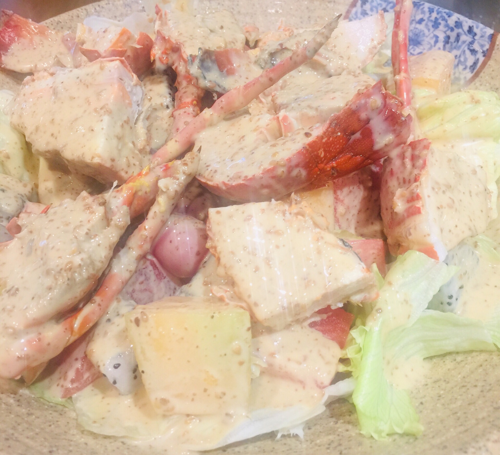 今年中秋博饼聚餐的其中一家,长辈们选择了比较熟悉的老厦门特色排档-202轮渡店,就在轮渡码头边上,哪里过来都方便! 环境大,有包厢,还有一片户外区域,可以吹吹海风,赏海景赏月景,赏心悦目! 整体菜品都很新鲜可口,独具特色,色香俱全; 必点龙虾沙拉,酱汁香滑,龙虾肉紧实饱满,配有丰富水果和鲜蔬,分量足,太抢手了,又点了一份鲜虾沙拉,一样精光; 贝螺拼盘、土笋冻,非常鲜美,下酒绝配; 鱿鱼蒸芋丝,鱿鱼的Q弹搭配香糯的芋丝,Q香爽口; 红烧深海鱼,鱼肉鲜嫩入味; 海鲜饼,内馅饱满,嘎嘣脆; 笋干饭,喷香可口的主食; 竹笙土猪肉汤,清甜好喝!