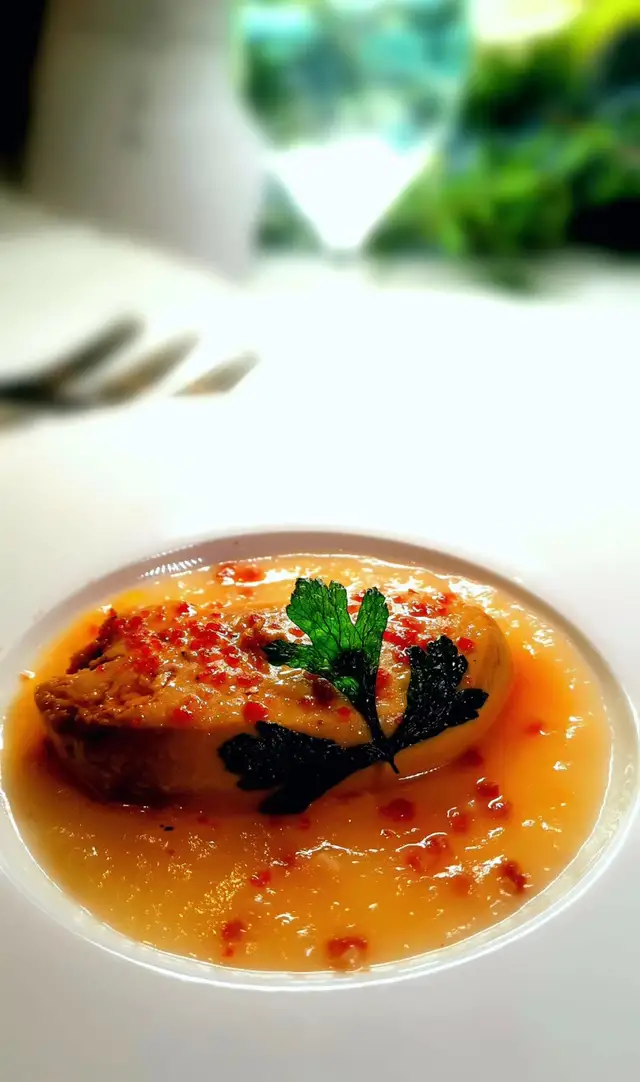 寻觅这家米其林餐厅,你会发现曲径通幽之美,餐厅开在广州正佳万豪酒店门口斜对面的地下室,缓缓绕行而下,一种豁然开朗别有洞天的格外意境油然而生。虽是西餐厅,但装修风格中却带着东方式的古朴。说回菜的口味,Alan的菜有一种中国式的隐忍和含蓄。