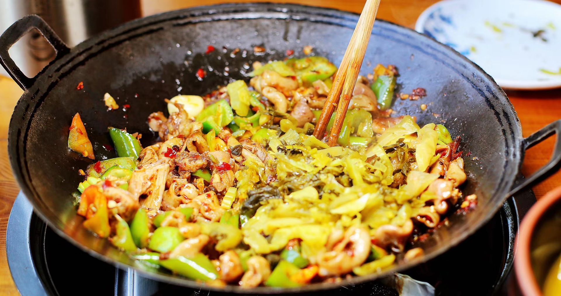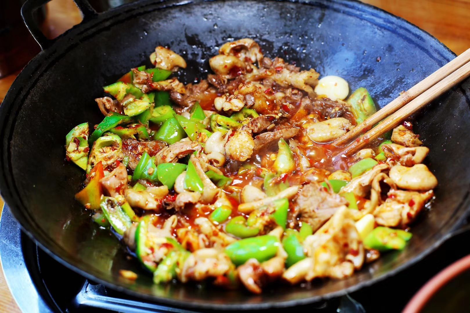 长沙人应该是比较喜欢这个品类,选择了张氏父子常德肠子馆,中午去得早一点,一会儿就人满了,群众基础非常好,一个人点了几个招牌菜,其实吃不完,服务员一再告诉我点多了,但是为了体验必须试试,我太难了,为了吃浪费也要做。 装修很简单,服务比较热情,味道好极了,端出来一锅肥肠加上似乎是巴骨肉一样的,在面前酒精炉慢慢煮,青辣椒加酸菜,后面香味越来越浓烈,香辣,下干饭太舒服,赞一个。 盐炸牛肉、素斋(红薯和藕泥裹粉炸)、烧豆腐(忘了什么豆腐了)口味都不错,属于民间的味道。