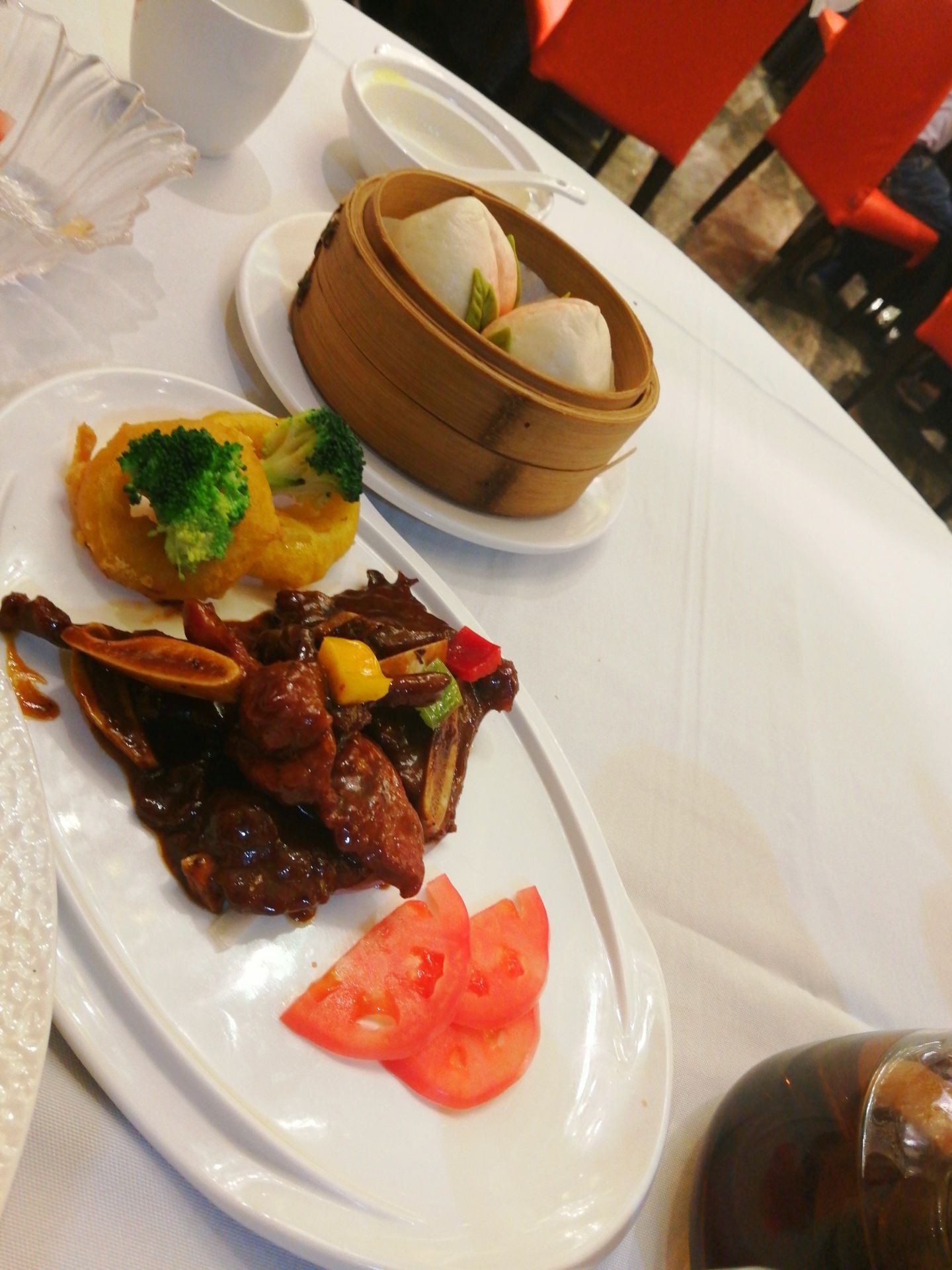 味道还行吧价格真心贵啊,点了黑椒牛柳骨,不是太好咬量少啊见图,丰收小抄还不错,丰收寿桃样子可爱...味道还行吧价格真心贵啊,点了黑椒牛柳骨,不是太好咬量少啊见图,丰收小抄还不错,丰收寿桃样子可爱,价格美丽,小米煮鲍鱼还不错。