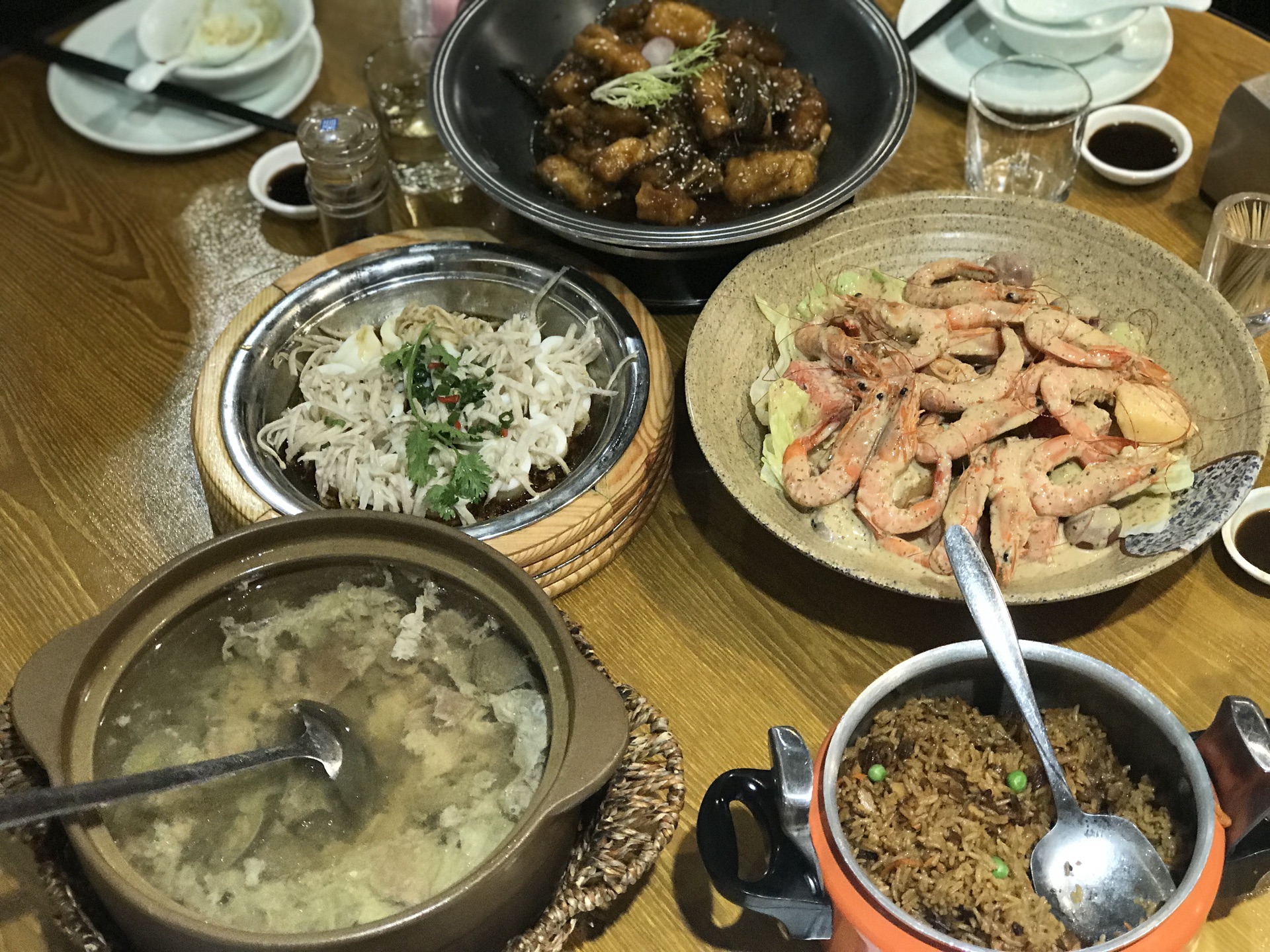他们家一直都是厦门人和游客都喜欢的一家大排档,老妈她们同学聚会经常去,这次家庭聚会就又来他们家啦! 位置坐车到鹭江道站下车,地下通道旁边的客运中心旁边就是啦 环境他们家完全颠覆了大排档在我心中的印象,环境无敌好,室内一大片圆桌,全木质很有质感的装修风格,室外更是别有洞天,超豪华观景座位!旅游必选呀! 菜品 大排档当然以海鲜为主,他们家的招牌特色是沙拉!龙虾沙拉,鲜虾沙拉都很有名,一直听说好吃但是没试过,今天一吃,简直是神仙料理呀!重点是一大盆比脸盆还大,份量惊人! 另一个超级推荐的是鱿鱼芋丝,一定要试试!!!味道太鲜嫩了!好吃
