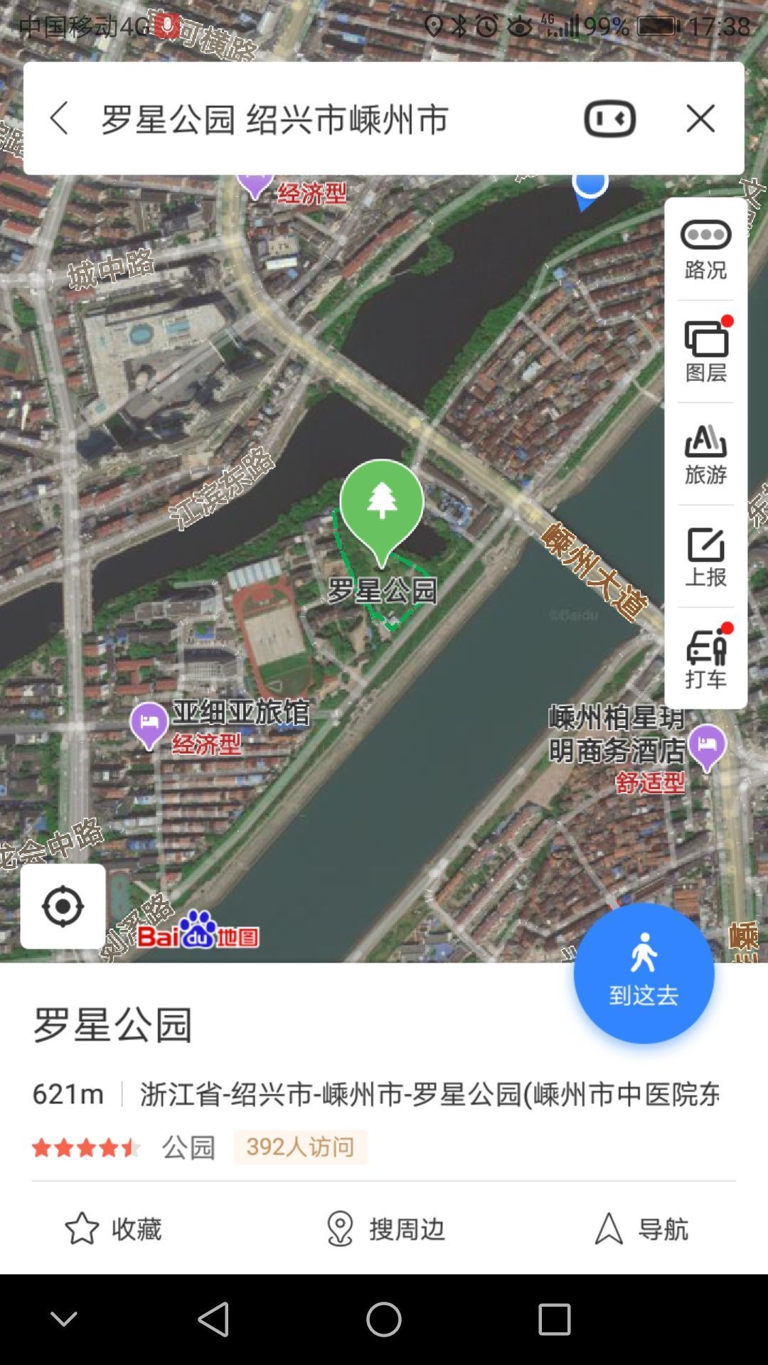 网友2019-09-25罗星公园位于嵊州市的医院路,公园绿化面积大,空气新鲜,内有设假山、石凳等游玩设施,晚上加设有夜灯罗星公园位于嵊州市的医院路,公园绿化面积大,空气新鲜,内有设假山、石凳等游玩设施,晚上加设有夜灯。在公园的西北角有马寅初铜像静立其间,是市民休闲游玩的好去处。