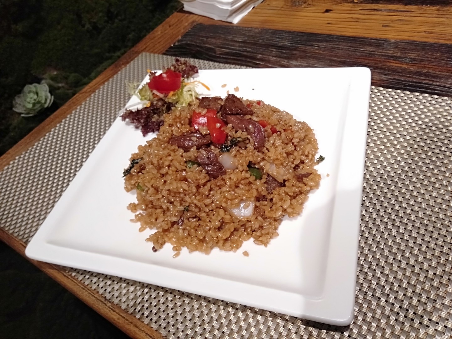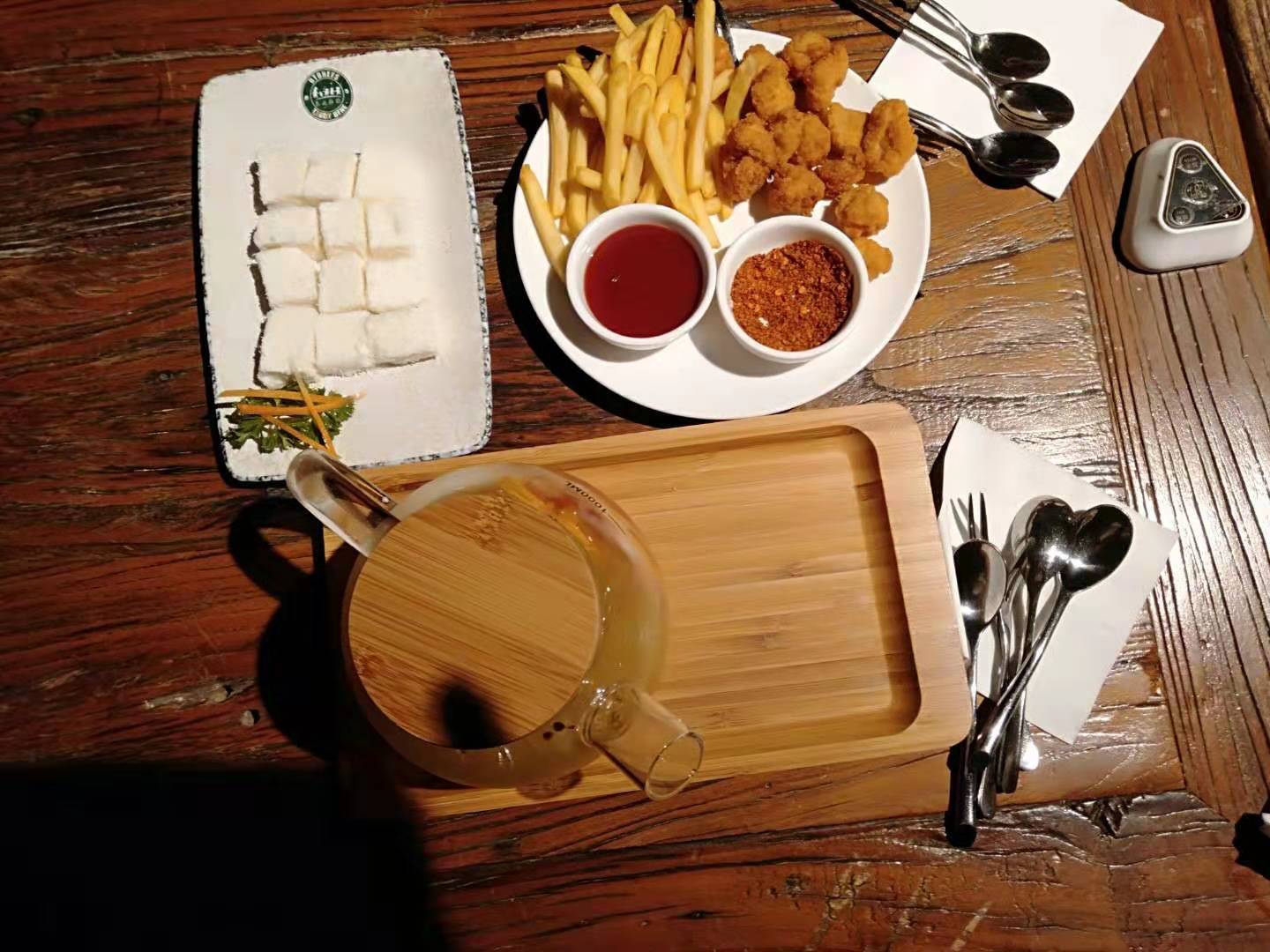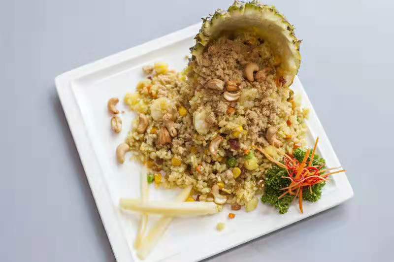 【口味】菠萝炒饭味道超棒,味道就是那种咸甜甜的的那种味道,吃着很好吃,我就比较喜欢吃甜的真的好吃,还是一个整的菠萝做的,货真价实的那种。 【环境】里面的环境可能要去了才知道,你可以想象自己家里全是泰迪熊是什么感觉,太棒了,下次带女朋友过来一起,真的很适合约会,聚餐那些,还有包间呢!真的不错。 【服务】服务员也很不错,给我们介绍菜品呀,什么是要过敏呀,什么是辣的酸的那些,真的很好。 下次还过来,值得推荐!