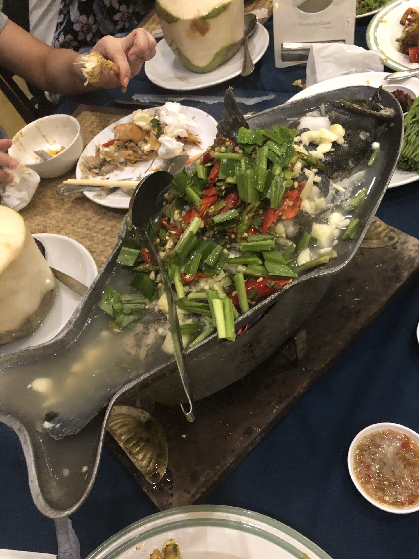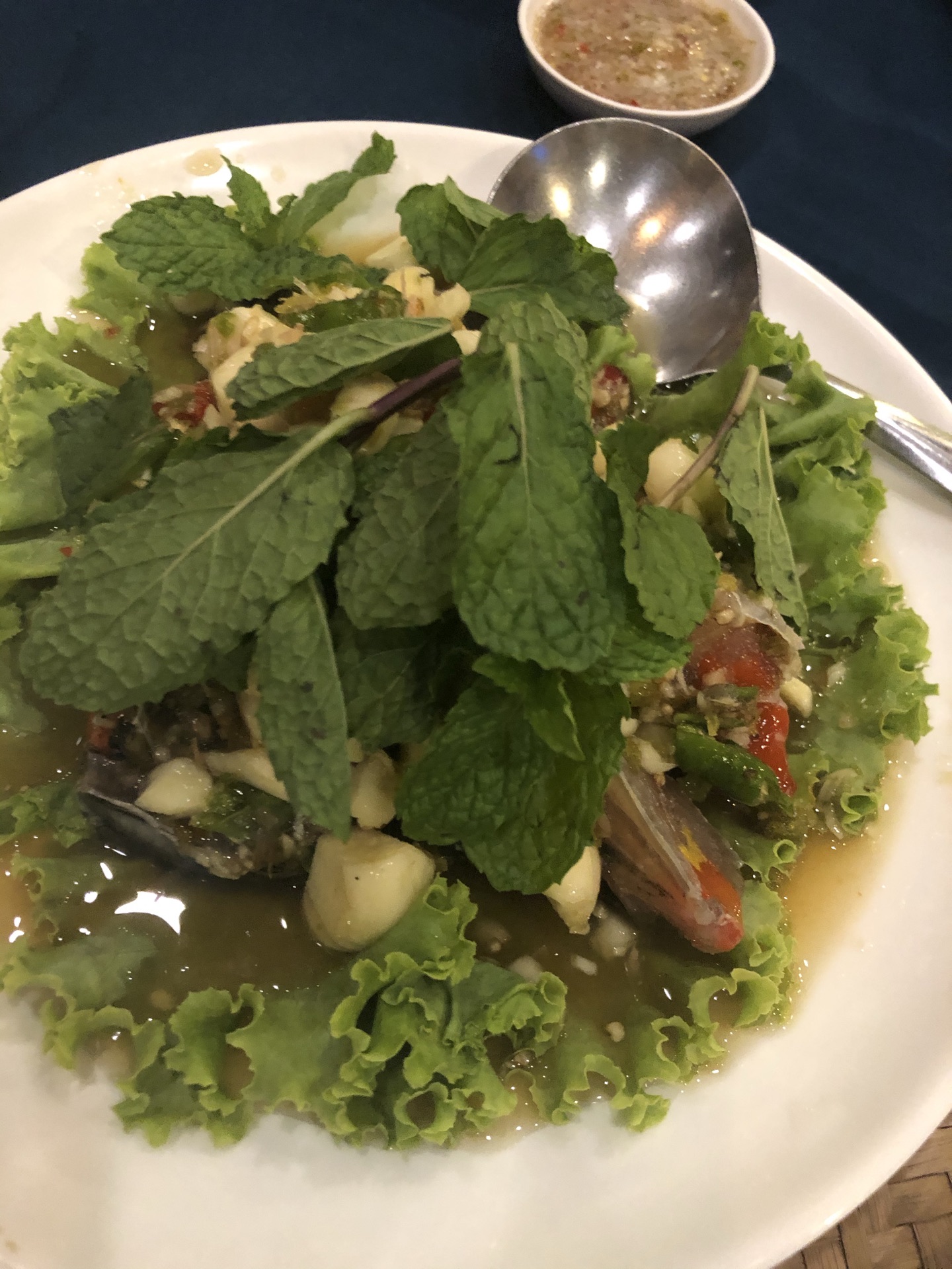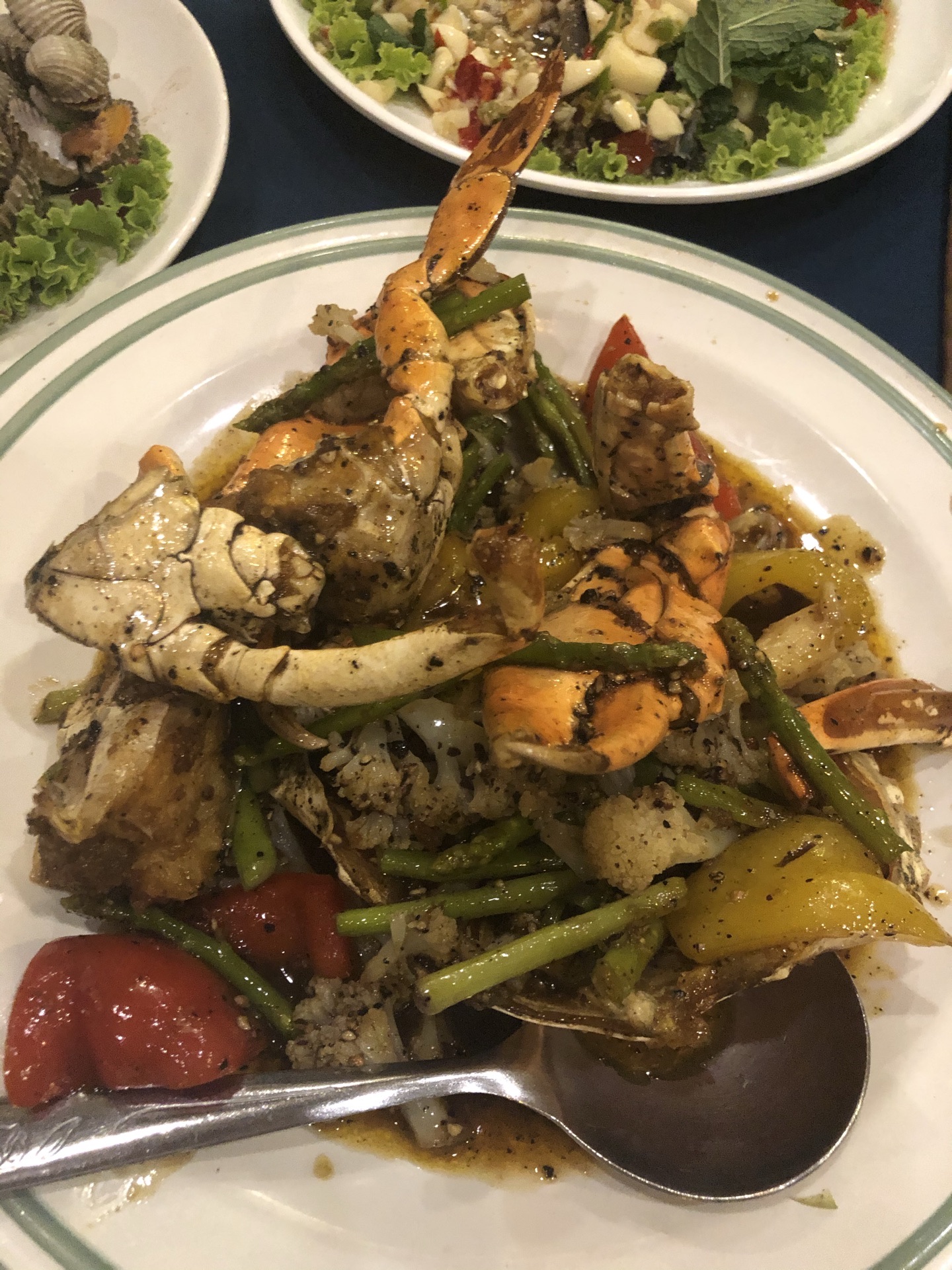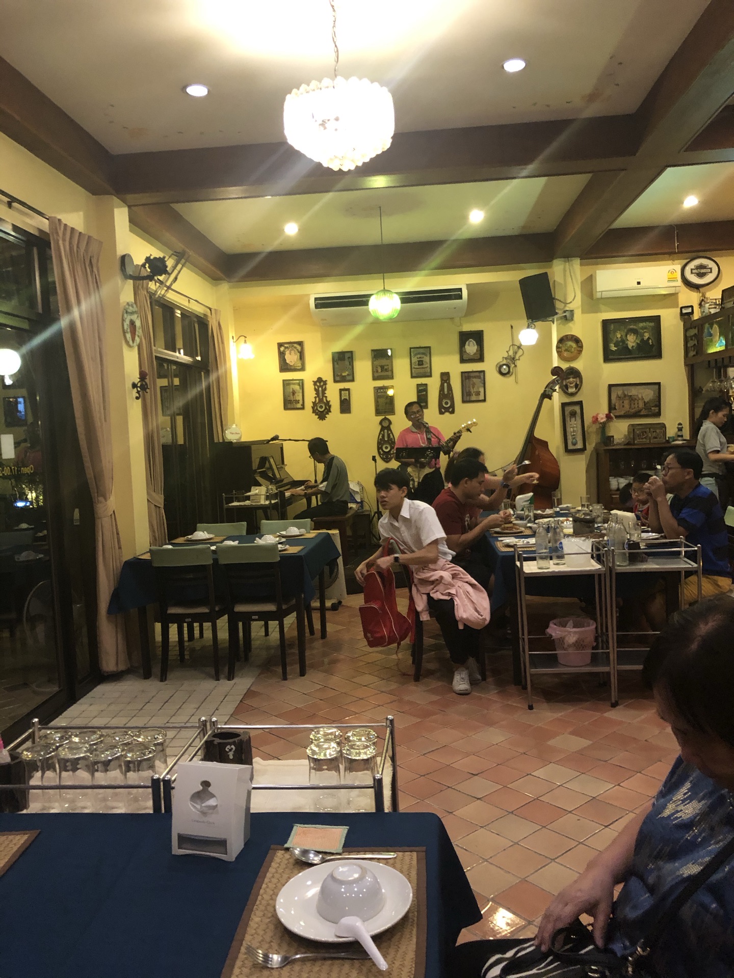 餐牌有中文标识,有的服务员会中文,会推荐特价优惠,点菜没有困难环境特别,室外像在丛林一样,室内有驻唱歌手;餐牌有中文标识,有的服务员会中文,会推荐特价优惠,点菜没有困难;菜的分量还算比较足的,在内陆的清迈,他们家的海鲜不错、新鲜,出品味道很不错。