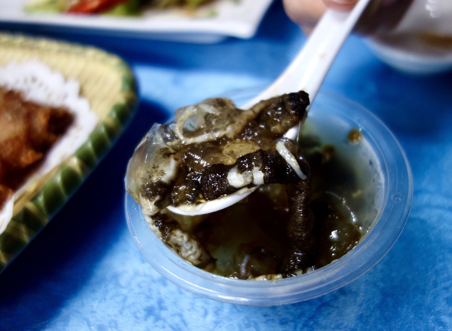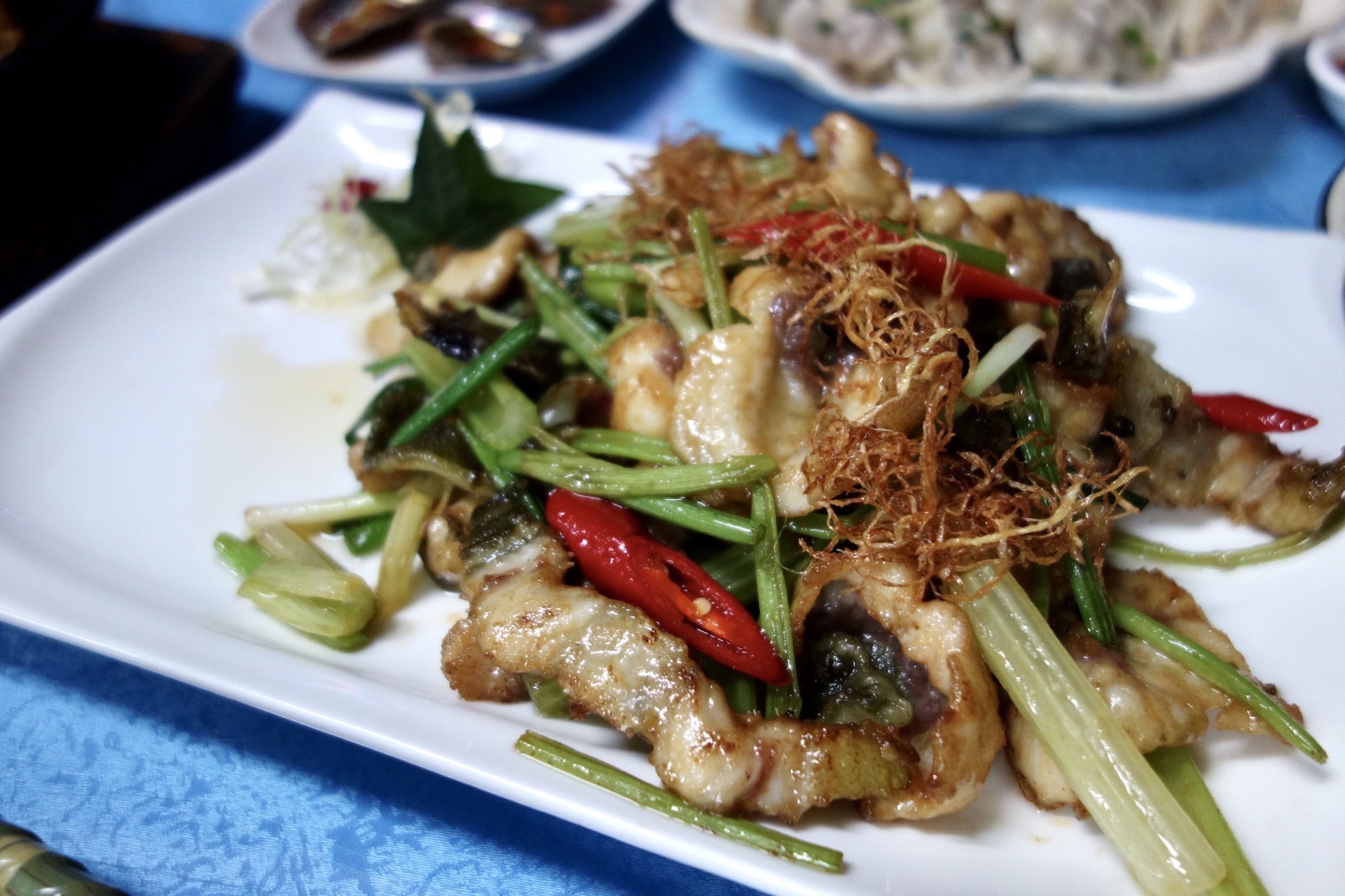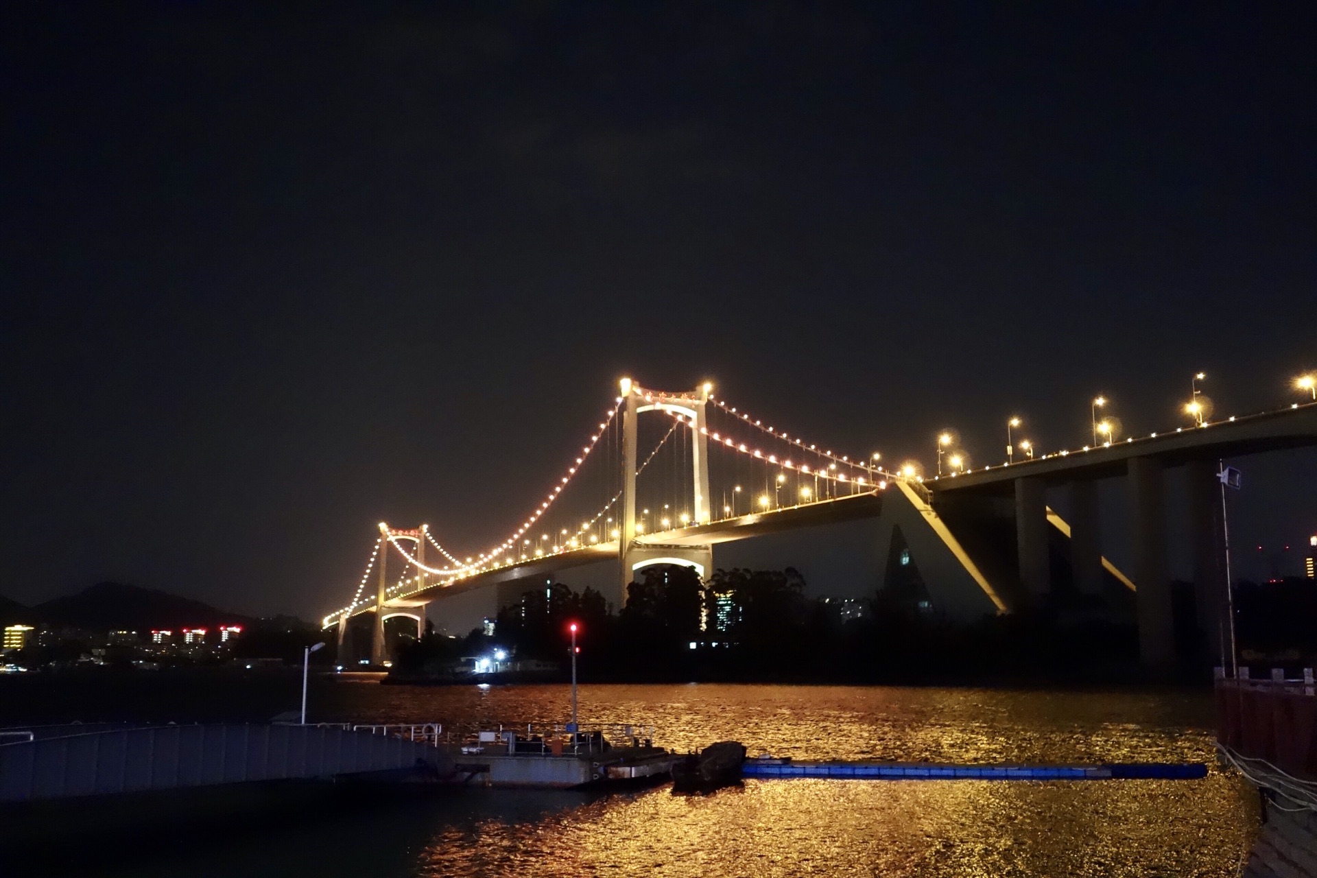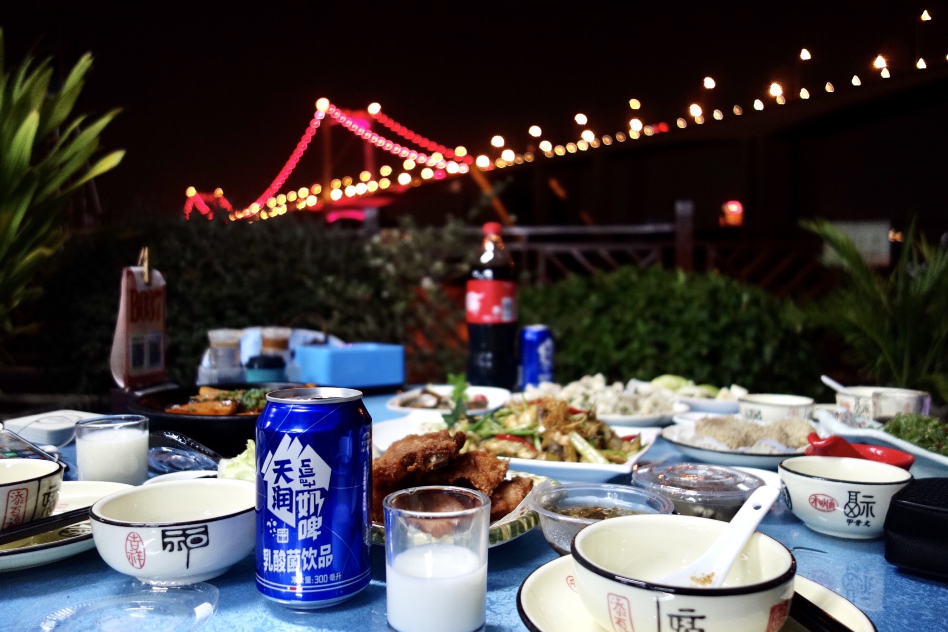 位于海沧的渔人码头大排档…位置就在海沧大桥脚下…公交车海沧湾站下车后往海边步行5min就到了…周围有非常多的停车位…驾车前来的朋友可以完全不用操心停车的问题! 工作平日晚市到店…座位还算有空闲…晚上生意蛮火爆…建议提前预定一下!店里有室内和室外的座位…环境属于一般大排档的水平…秋高气爽的天气…大多都选择了室外…选了海边的卡座…眼前是浩瀚的大海景和荧光闪闪的海沧大桥…海风清爽的吹…非常惬意! 土笋冻 非常实在的土笋汤…土笋虫很大只…只只肥硕…真材实料…加上蒜蓉酱…超级满足! 爆炒鲈鳗 鲈鳗切片和芹菜辣椒等爆炒…切片的比较薄…份量有些少…鲈鳗肉质蛮Q…有点不好咬…味道还是不错的! 海山骨 搭配着包菜吃…炸的非常酥香!肉汁饱满肥肉都不腻…好吃! 炭烧鲍鱼 烧烤酱烧烤的鲍鱼…咸香弹口…个人虽然不大…口感不错! 乾隆豆腐 是煲制的日本豆腐…下饭圣品! 话梅芭乐腌的酸甜可口…解腻得很! 整体性价比非常划算的排档…帮忙烫碗筷换骨碟的服务也很不错…环境一级棒…聚餐好选择!