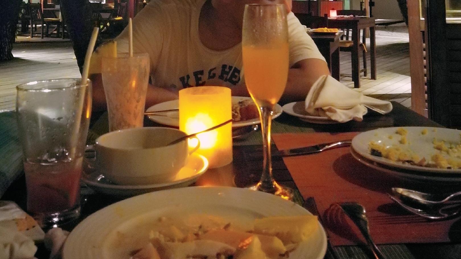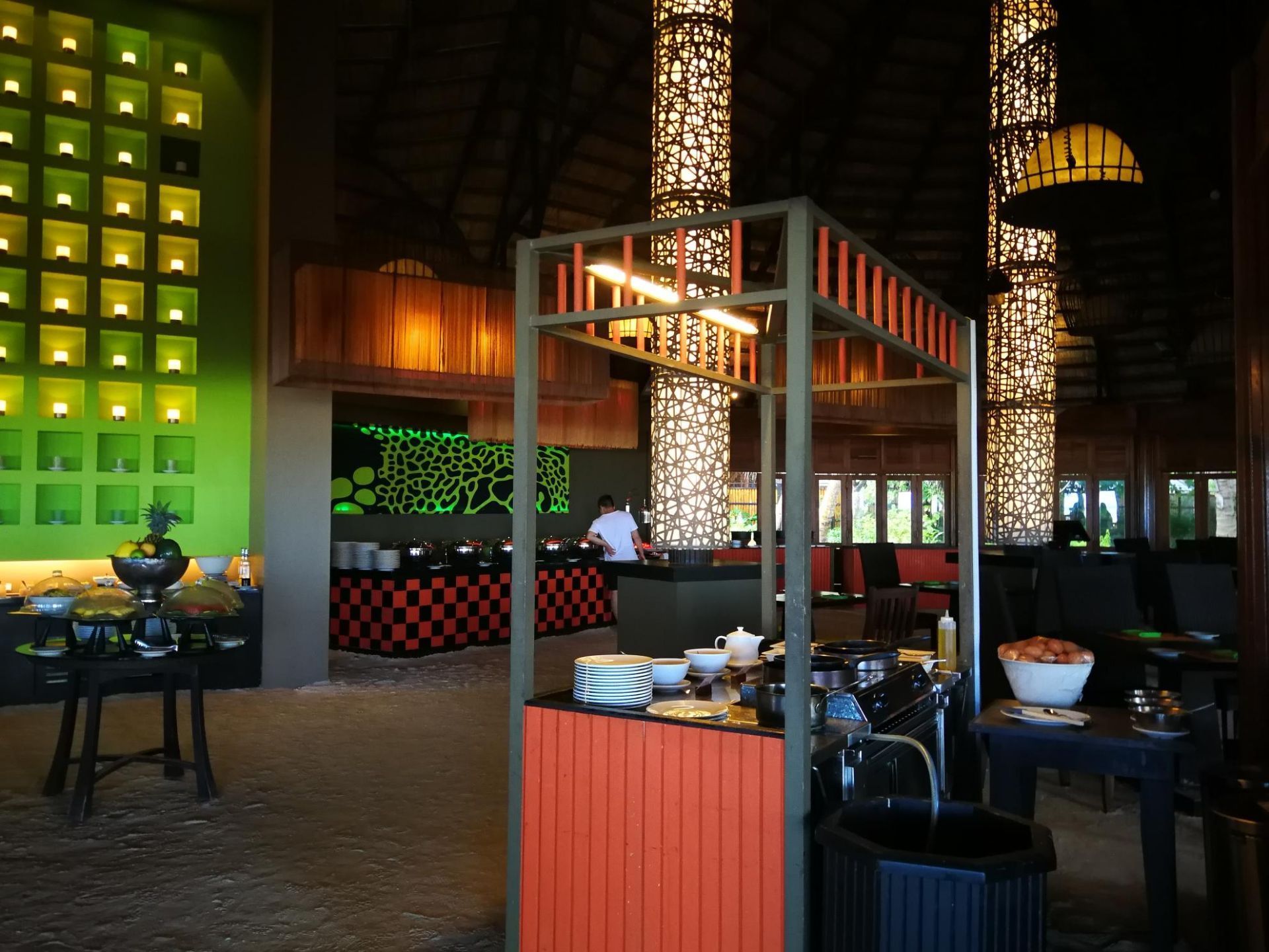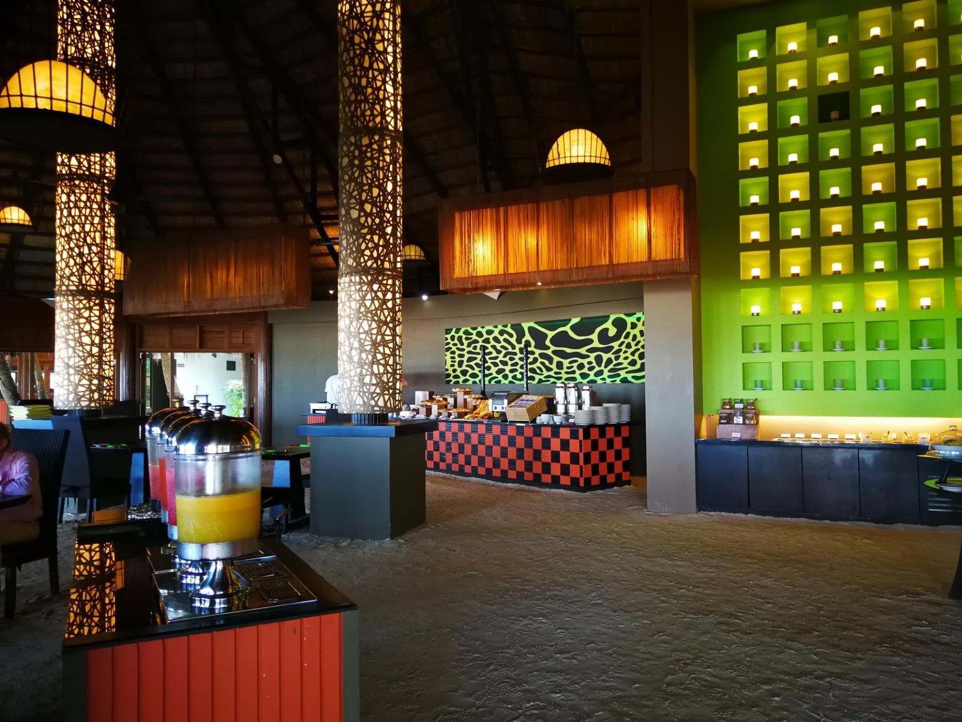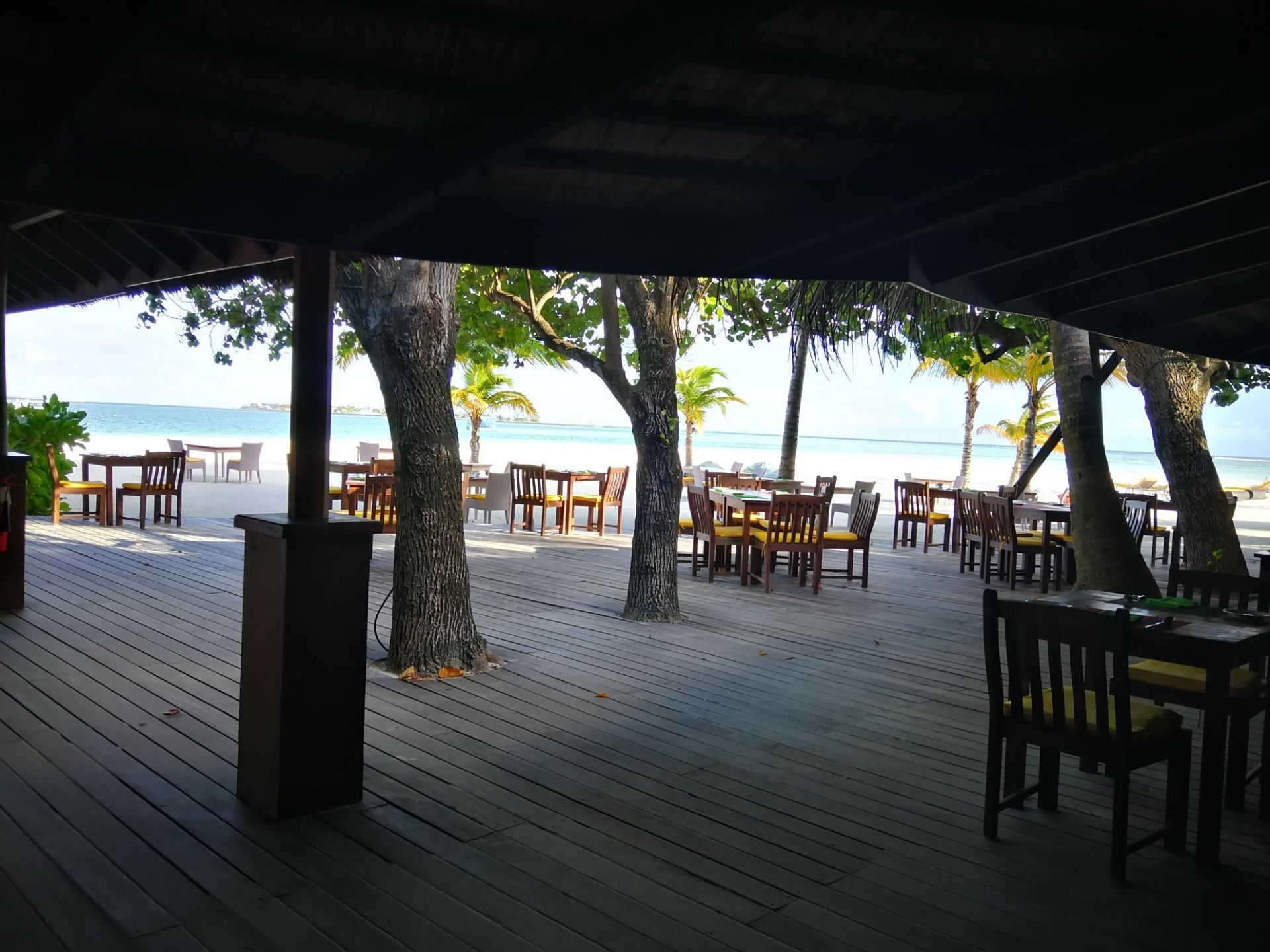 —❥ ——位置 马尔代夫薇拉瓦鲁岛上有3个餐厅 kaani是沙屋这边一个自助餐厅 早晚餐或者全包套餐都是在这里吃 自助餐厅旁边是酒吧 一价全包可以任点酒水 —❥ ——环境 餐厅是岛上面积最大的,有室内还有室外空间 环境比较原生态,室内地面就是沙滩 —❥ ——口味 早餐 种类不多 大部分都是西式面包真心吃不惯 还好有白粥,甚是怀念咸菜豆腐脑油条 午餐 三餐中最唬弄的食材也是最少的 餐厅的餐台 早上会摆2/3的食物 午餐只有1/3的食物 晚餐几乎全摆满 怪不得好多人只选早晚餐呢 吃的不太好,其实也有好处 省的下顿吃不下,哈哈 晚餐 晚餐种类不多但是够吃 味道一般,口味偏清淡,可以接受 重要的是几天基本不重样 吃晚餐的时候可以直接点酒水很方便 ——————————————————————————