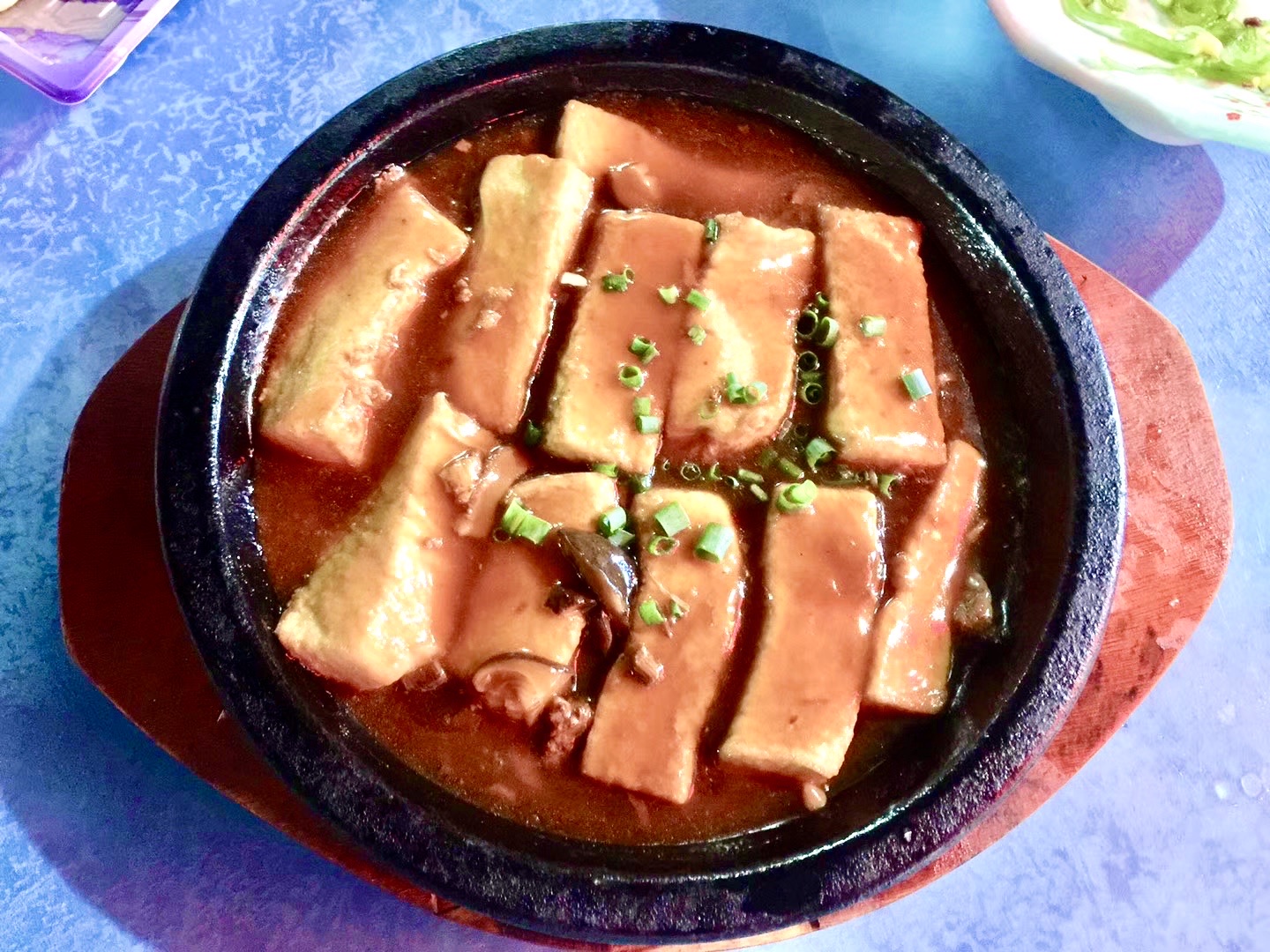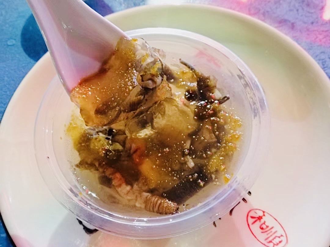 海沧大桥下面居然有一家很棒的海景海鲜餐厅诶!周末的生意真好,隔壁就是海沧的大屏山,爬完山下来,还没晚上7点,差点就室外没有座位了!大家周末要尽早去。 它家的菜品,就是直接显示屏在墙面上的,满满的一墙,图片菜名价格一目了然,明码标价。送餐也都是推车送,谁让生意做这么大呢!话说回来,生意太好,以至于上菜速度真的有点慢,服务员宁愿劝你退菜,也不想去厨房催菜,因为会被告知,厨房忙不过来啦! 爆炒鲈鳗,这是店内招牌之一,一上桌香气扑鼻,色泽诱人,咬一口满满的胶质,鲜香而不油腻,脆嫩鲜香 炭烧鲍鱼,鲍鱼肥嫩紧实富有弹性。烤得外焦里嫩,比平时吃到的蒸的,焗的,煲的各种做法的鲍鱼都好吃,带上碳烤的香味,一口下去口齿留香。 乾隆豆腐,上了桌还在石锅里咕嘟咕嘟的沸腾,香气不断涌出,汤汁鲜美,入味咸鲜豆腐很嫩。 霸王土笋冻,一人一碗,他家的土笋冻,我觉得普普通通,稍微有点腥味,觉得海沧土笋冻还是三都最好吃! 驰名海山骨,一块块个头都很大,炸的刚刚好,外酥里嫩又多汁,非常入味。建议包着青菜,不然有点油腻。是真的好吃,一个人吃三块都可以! 还有还有,这水饺竟然意外好吃,皮薄馅鲜,一口一口吃掉,很满足!而且分量非常足~