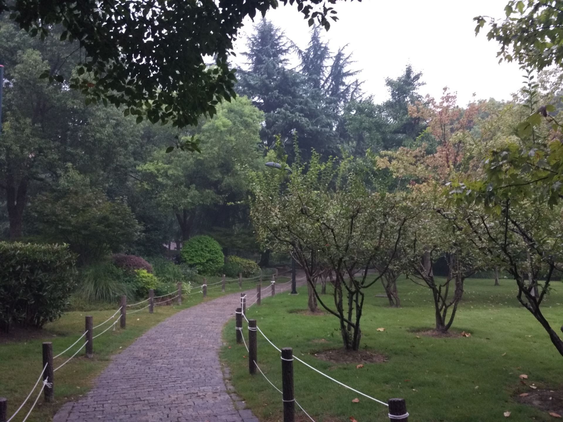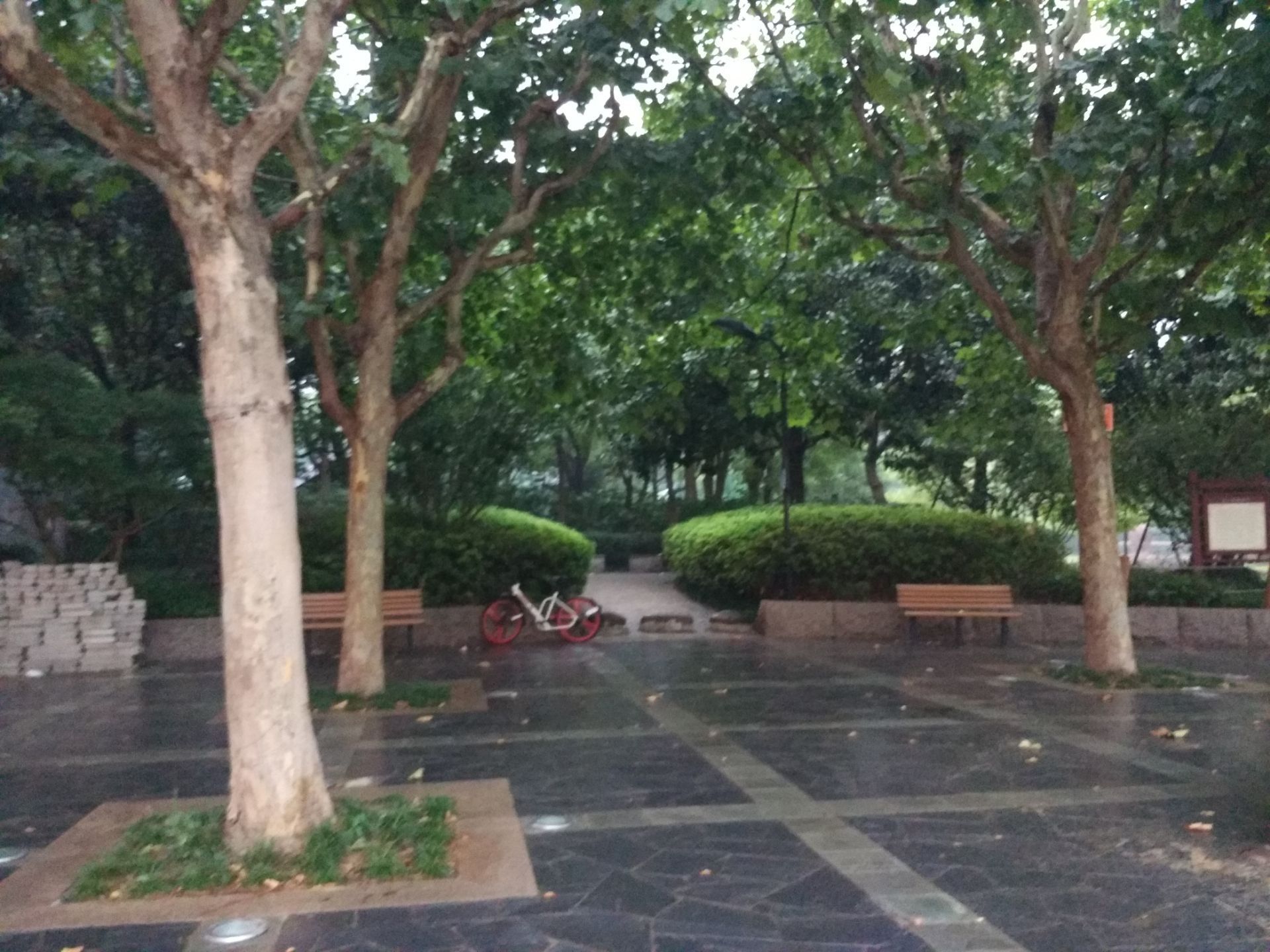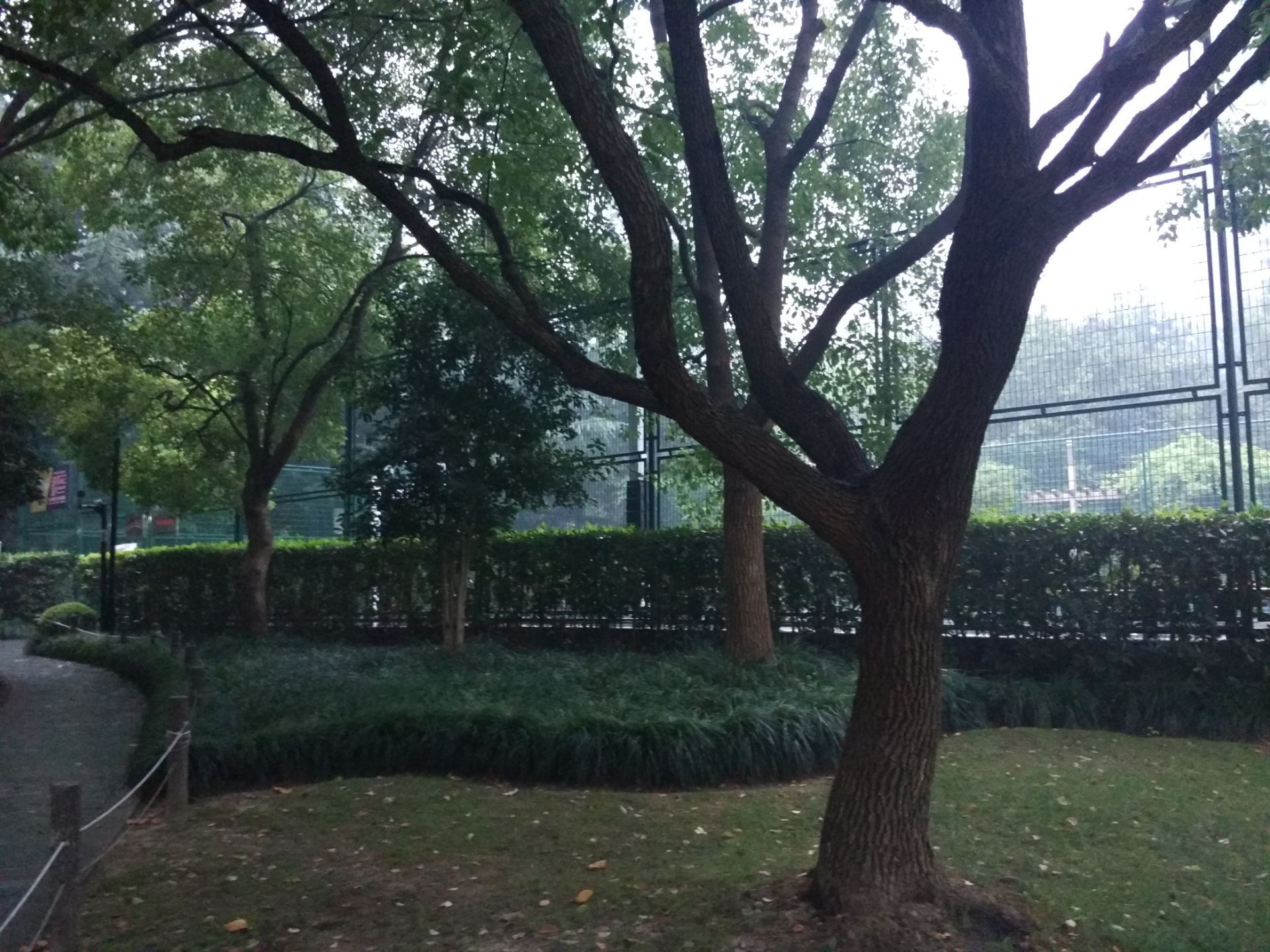 这片绿地东面是华山路,朝南就是春光坊,幸福路在西边,北方是湖南路,四通八达,免费无遮拦开放式模式,里面划分为了八个景区:杉杉相映,林森鸟啼,绿波引胜,叠溪飞流,栈桥生趣,秋色生辉,童趣欢天,碧野芳庭,其实很难区别哪是哪。最受运动爱好者喜欢的篮球场也是免费开放的,有铁丝网围栏,绿地四周公交站也是配备的,目前东门周围有市政施工。