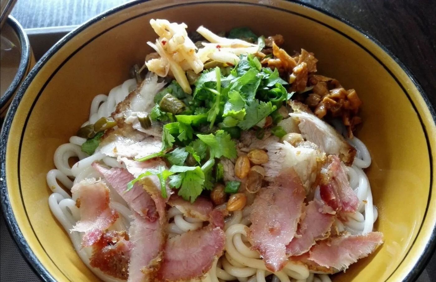 主要是粉的口感特别好,软滑有韧性,跟在桂林吃的几乎一模一样,而且就是干捞,另配汤