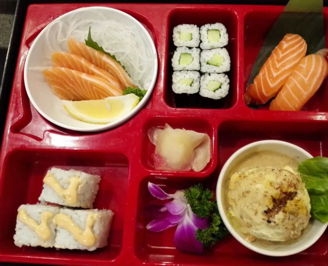 寿司饭团捏得很好,新香芝士三文鱼卷口感和味道都让人回味,海鲜炒面料足量多,如此出品和价格,难怪...