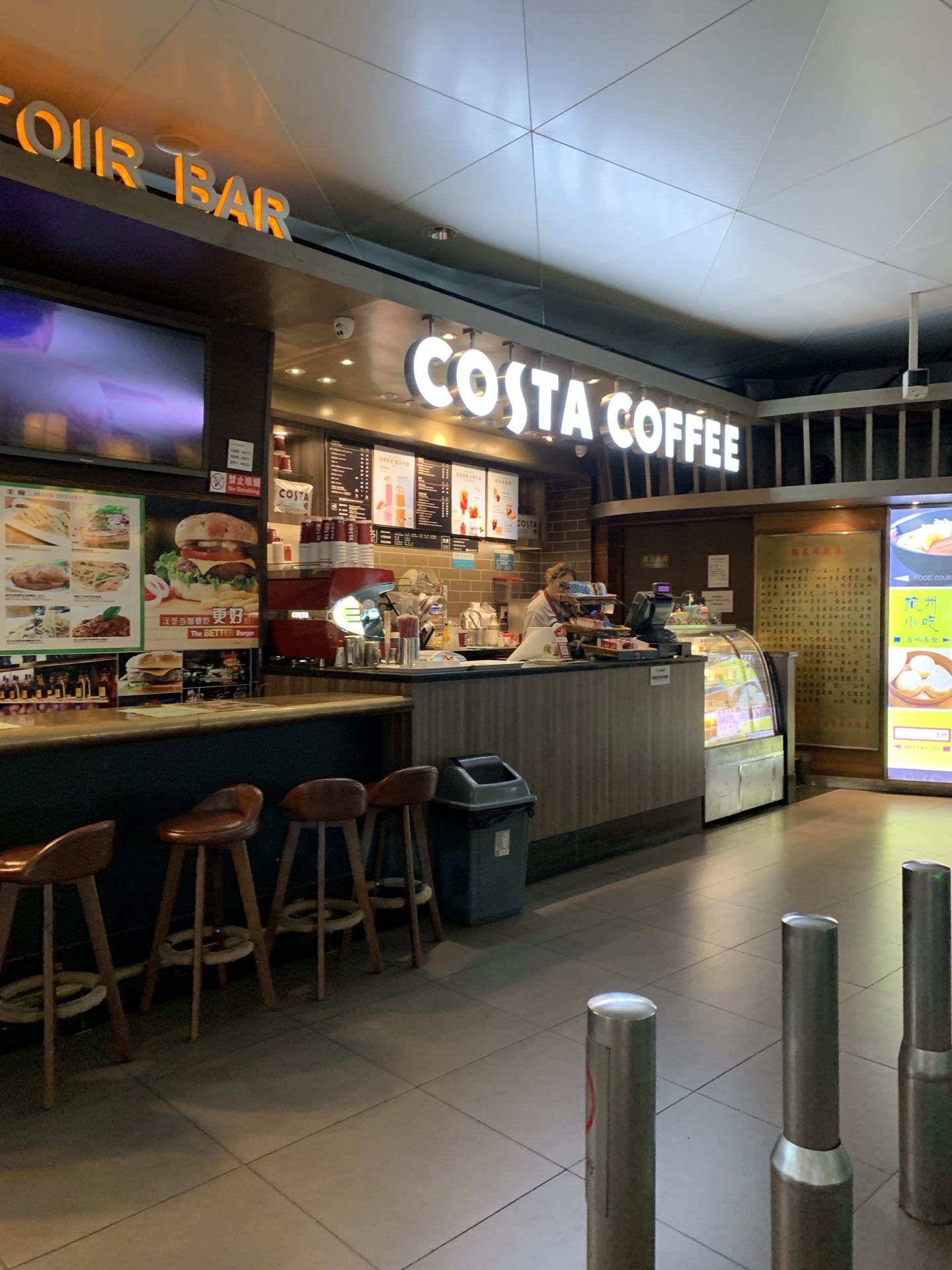 这家costa coffee是在机场安检过后的地方,是在二层的位置,店面不是非常大,店里面主要有一些三明治之类的,在等待飞机的时候,到这儿小坐片刻,点一杯咖啡,感觉比较惬意,这家咖啡的味道还是比较不错的。