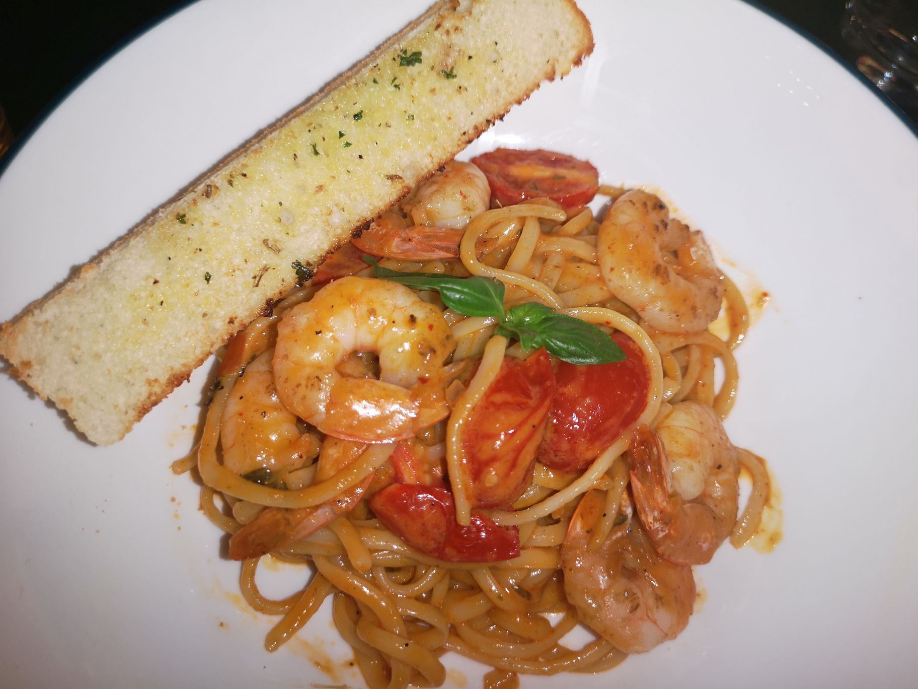很久以前就知道这家清吧,终于有时间过来一试。晚上人还是比较多,属于越夜越旺场,点了牛肉披萨,薄饼底,芝士味不够浓郁不过还算过得去。三文鱼荞麦牛油果沙拉,味道酸酸的比较开胃。红咖喱大虾味道不错,虾仁很好吃,虽然是红咖喱不过不会很辣。其实有好多款酒可以饮不过我们都没有点纯点餐吃,环境装修还不错值得一试。